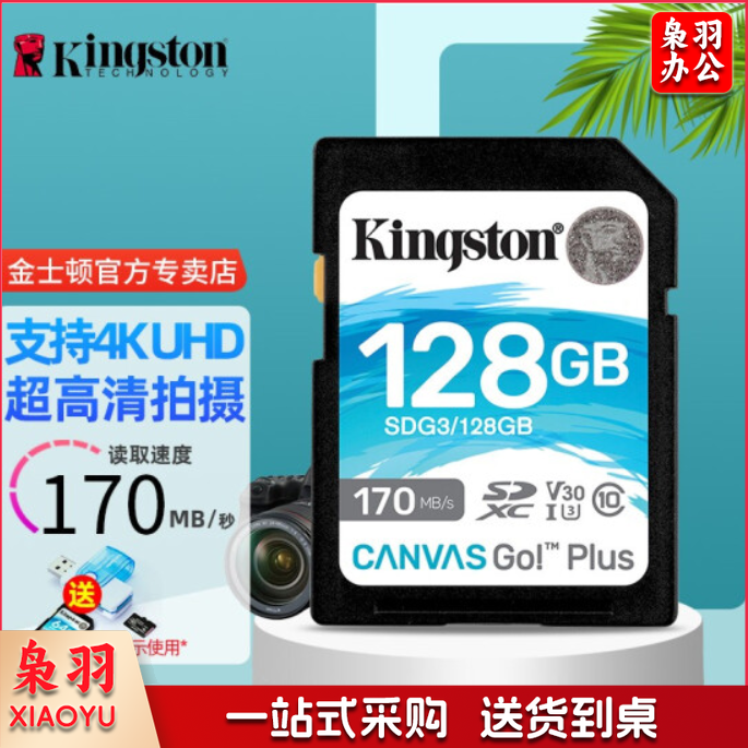 金士顿 SDG3/128GB SD存储卡 U3 V30 相机内存卡 4K超高清拍摄 读速170MB/s