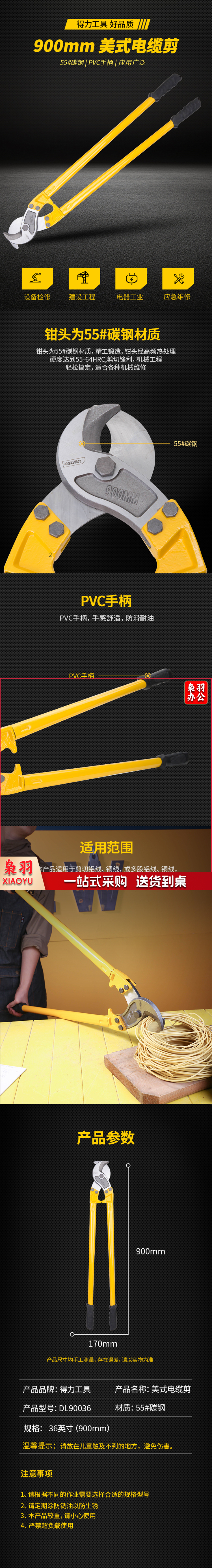 得力工具DL90036美式电缆剪900mm(单位:把)