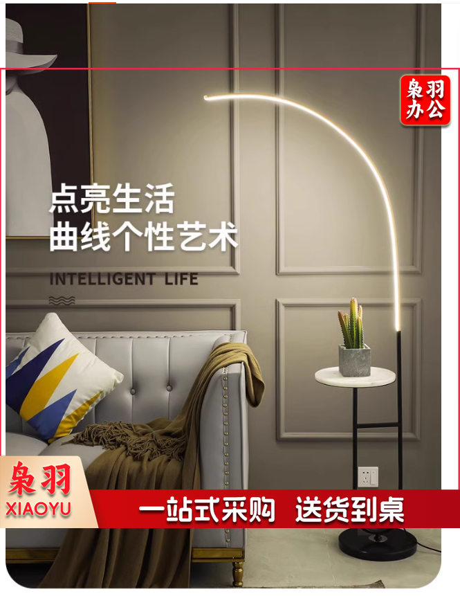 落地灯 北欧简约置物架创意设计师钓鱼灯 大理石桌面+无极调光+遥控器