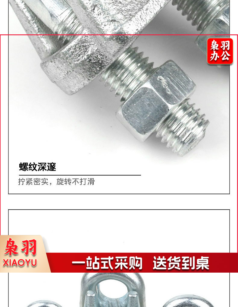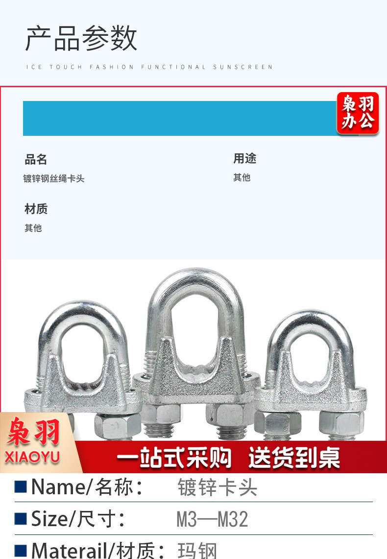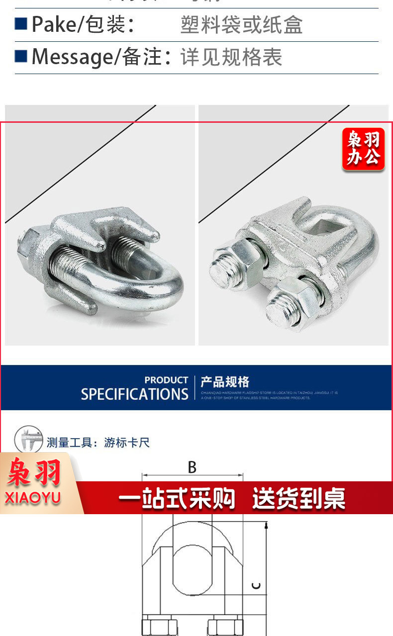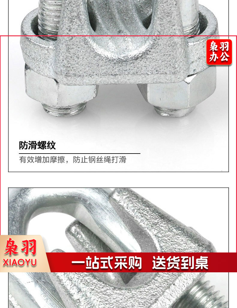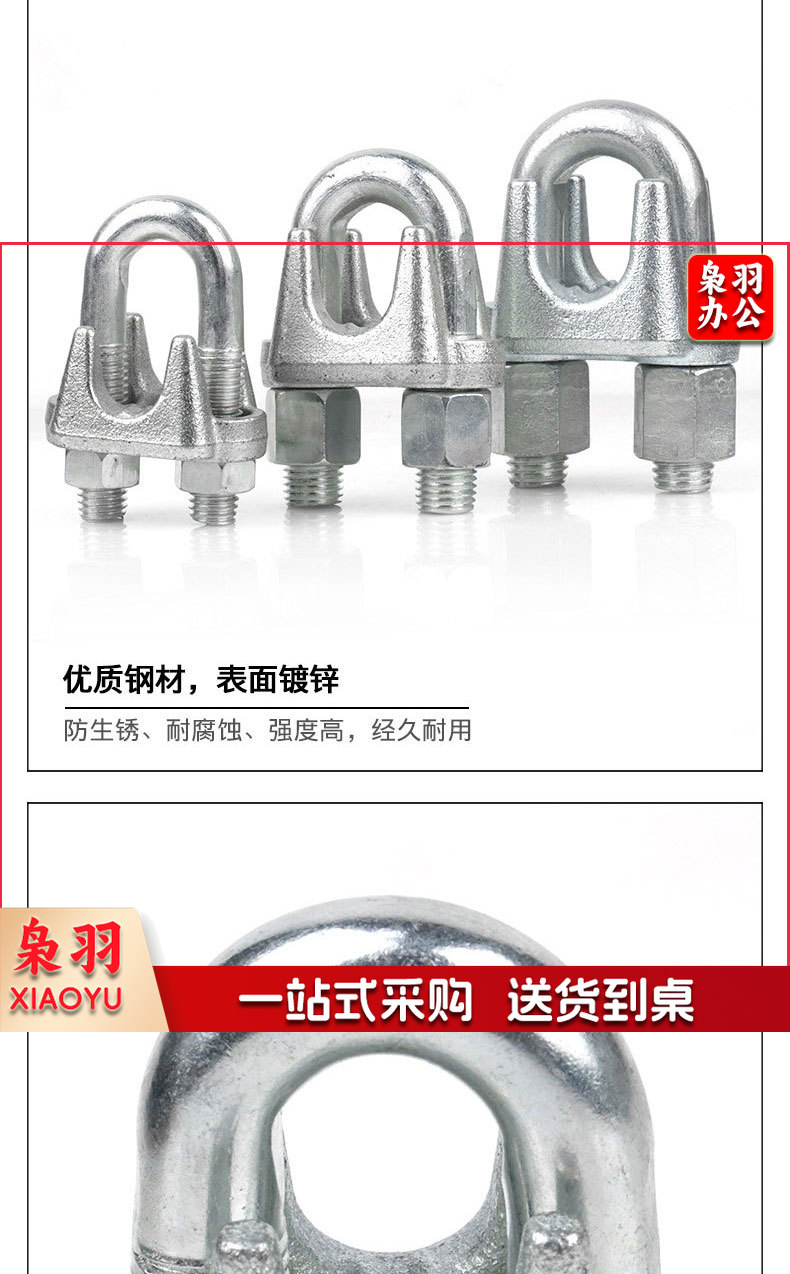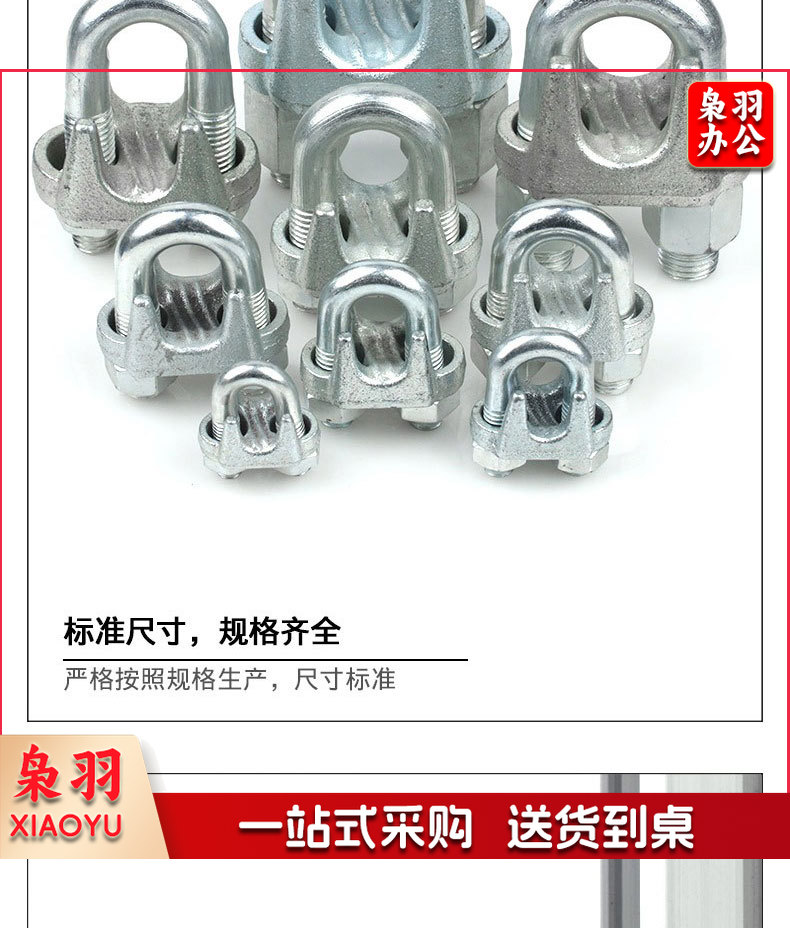 M5 镀锌钢丝绳锁扣U型扣夹绳器钢丝绳夹头卡扣