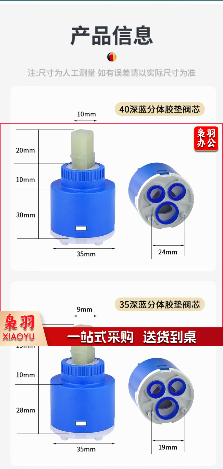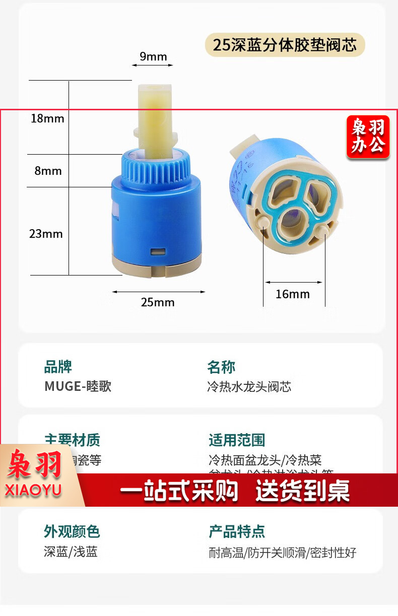 40久久深蓝分体胶垫阀芯 冷热水龙头厨房面盆通用混水阀阀芯陶瓷维修配件大全
