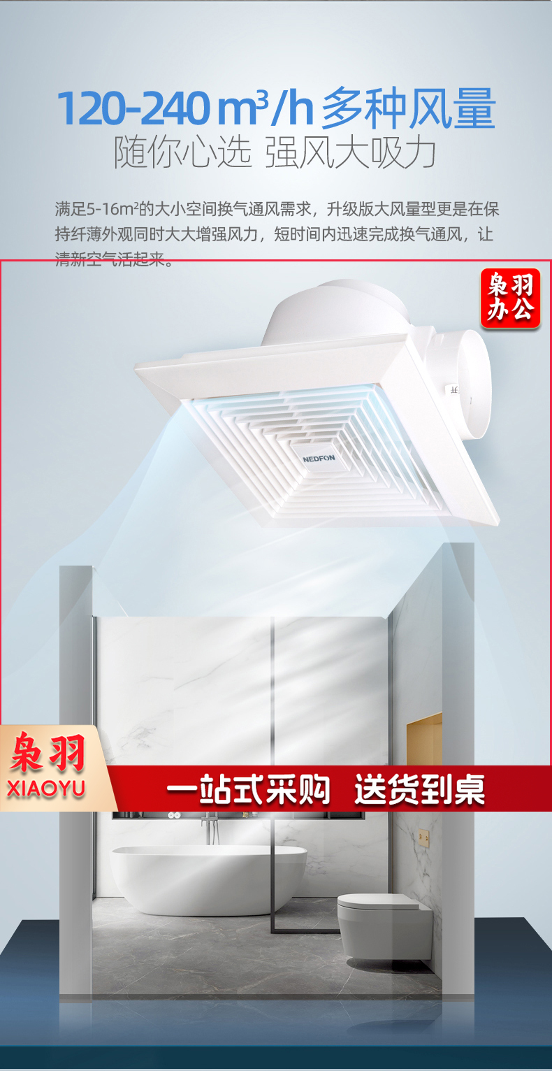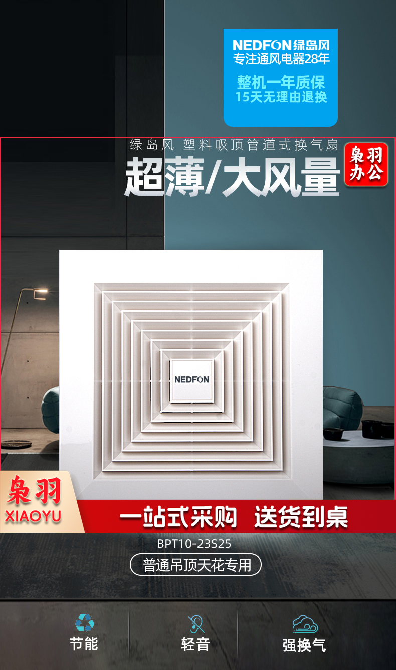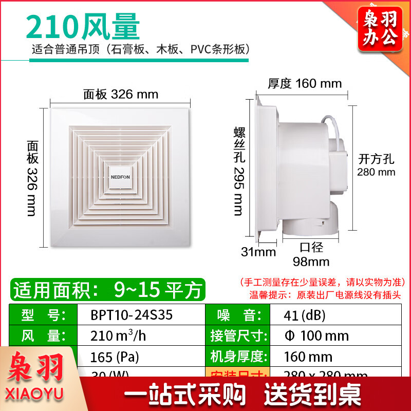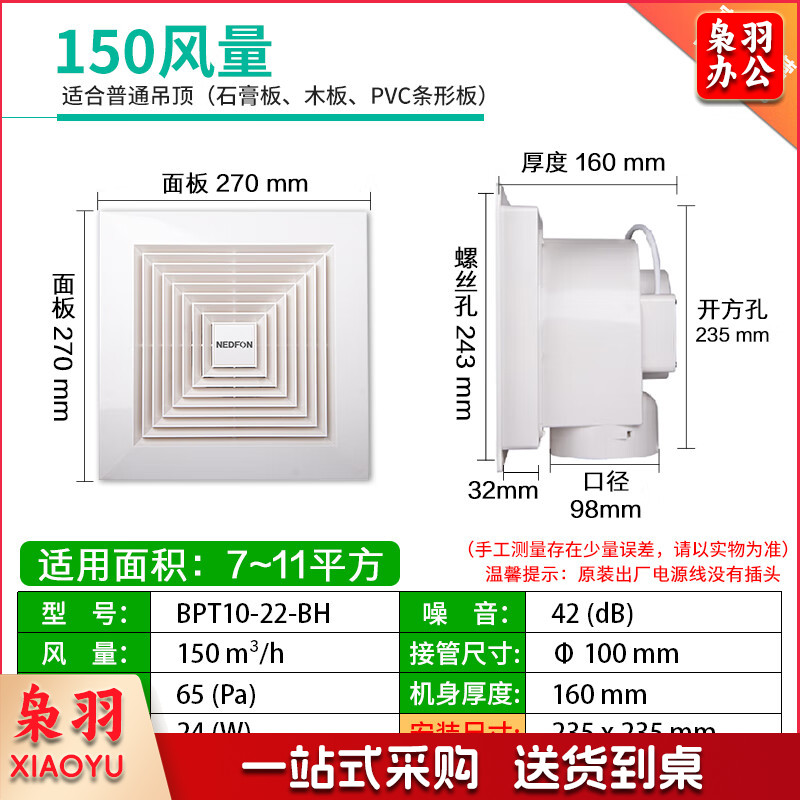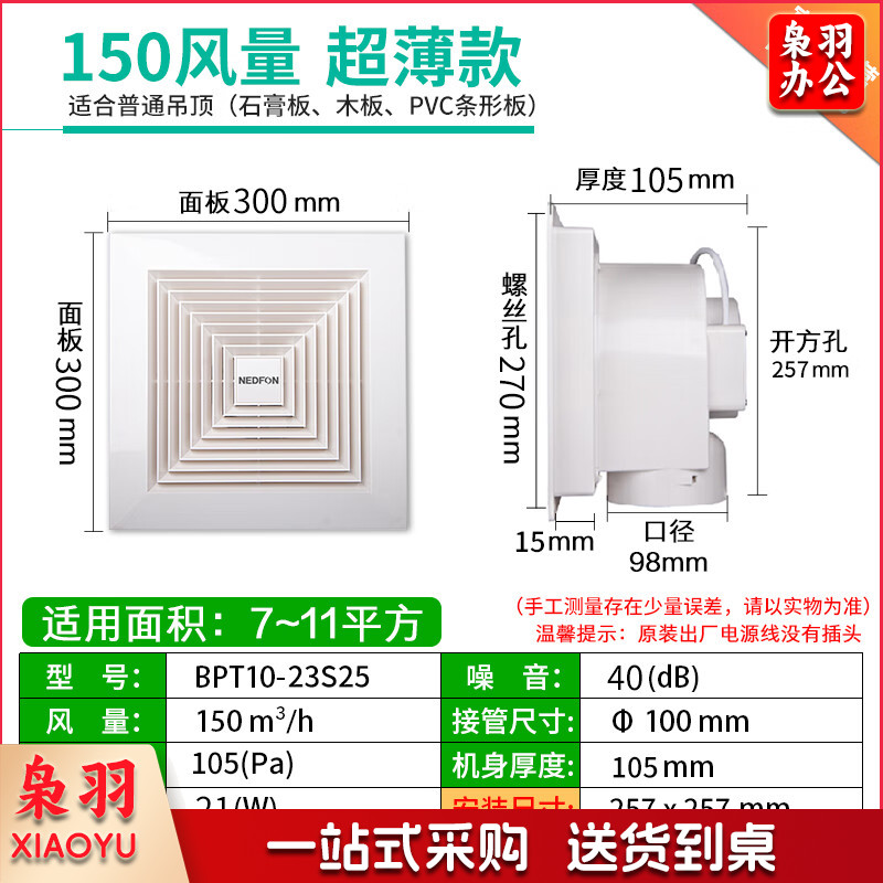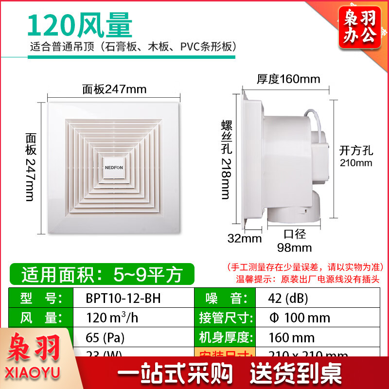 BPT10-22-BH 塑料管道换气扇卫生间薄吸顶扇厨房换气扇排气扇轻音吊顶排风扇