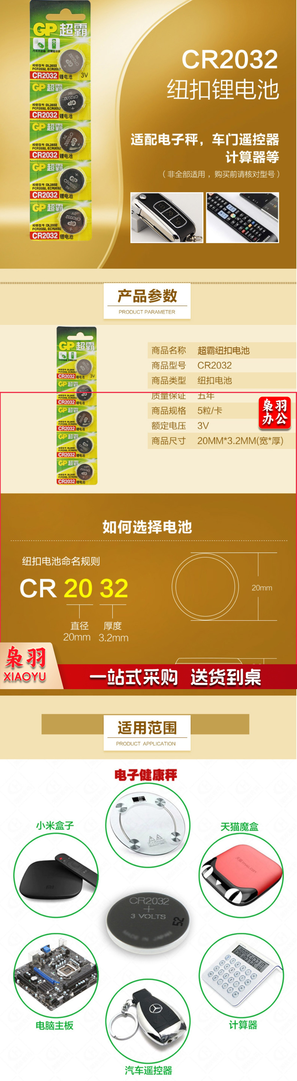 超霸(GP) CR2032 超霸 CR2032纽扣电池 1粒