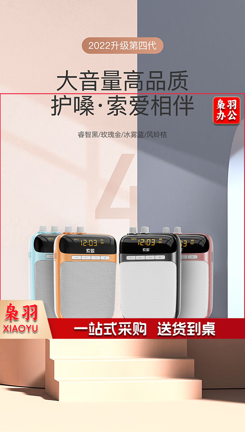 索爱(soaiy) S318 小蜜蜂扩音器教师专用蓝牙音箱小喇叭腰挂麦克风导游插卡便携式喊话器教学讲课 睿智黑