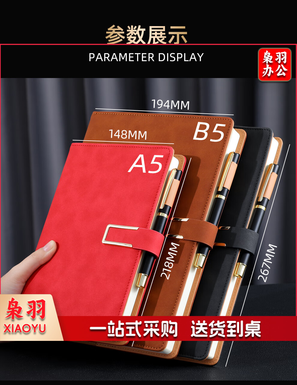 商务笔记本本子加厚记事本羊巴皮面笔记本子文具搭扣日记本办公会议记录本定制logo a5红色(单本)