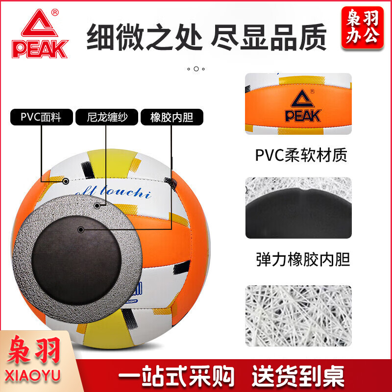 匹克PEAK比赛排球5号经典机缝PVC排球儿童男女学生中考训练排球YQ11301白/橙/黄