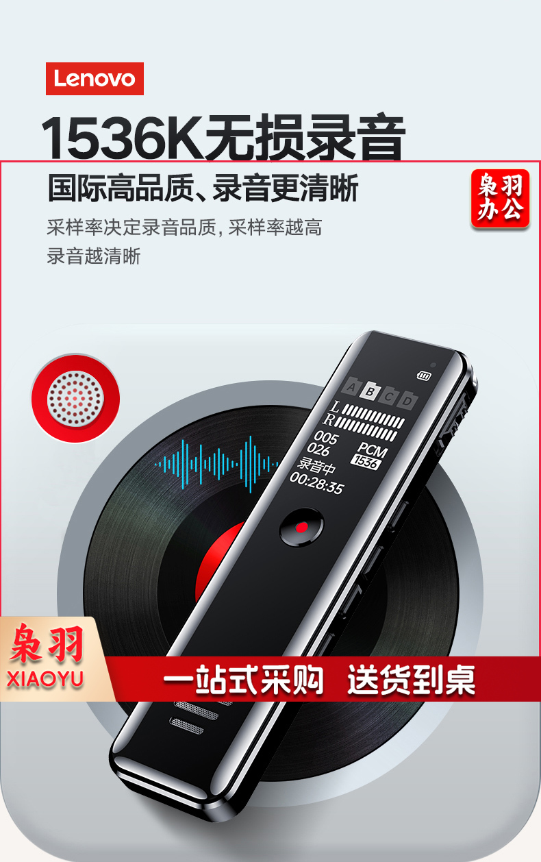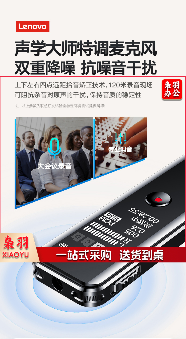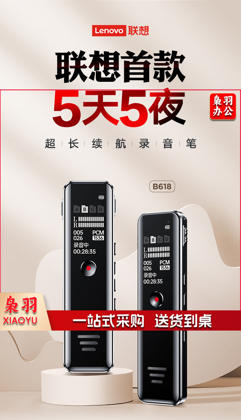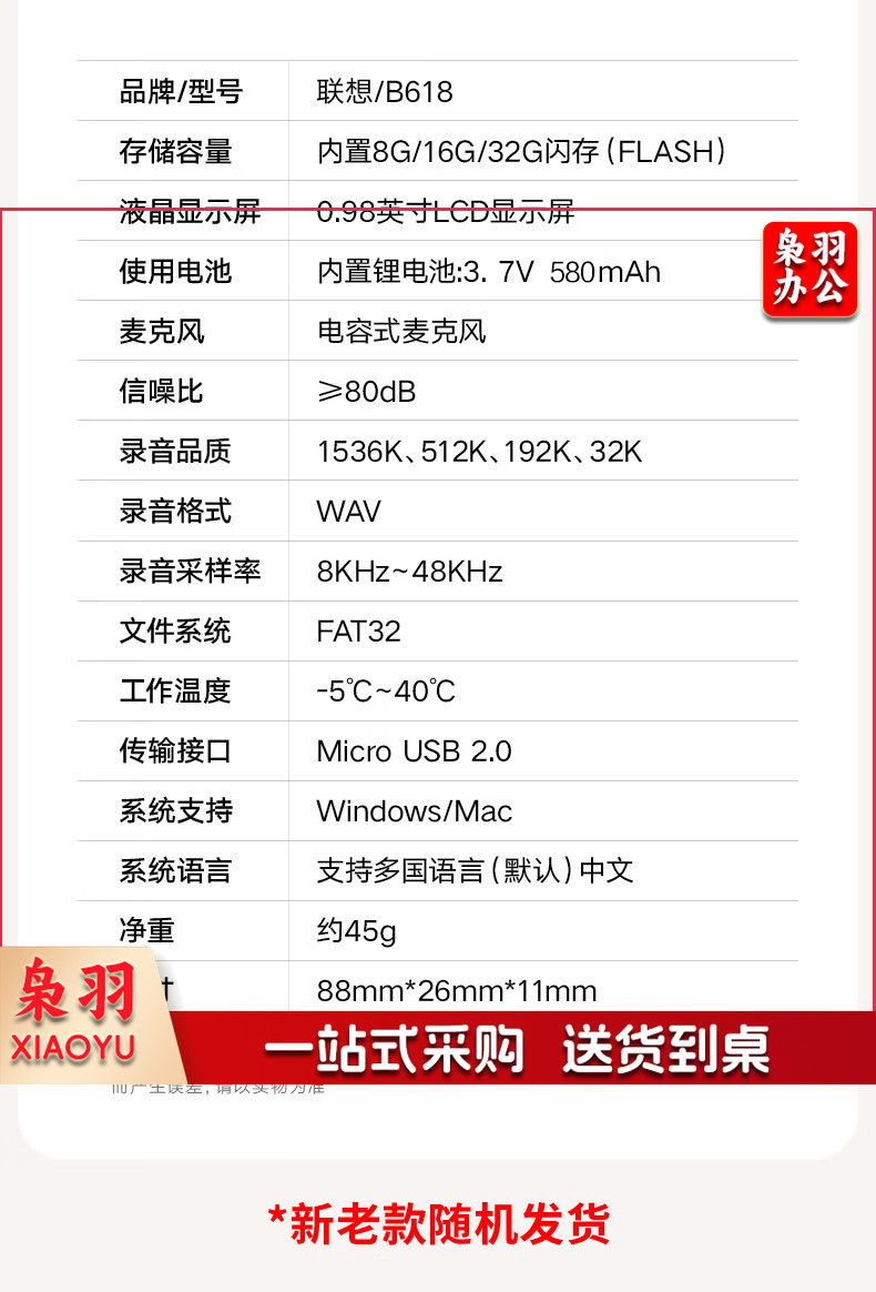 联想(Lenovo)录音笔B618 8G专业高清降噪远距声控录音器超长待机学生学习商务采访会议培训