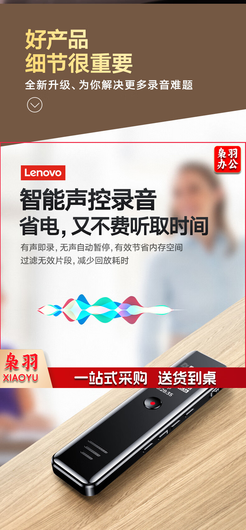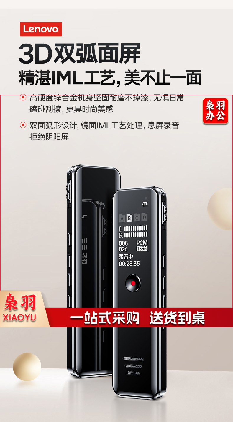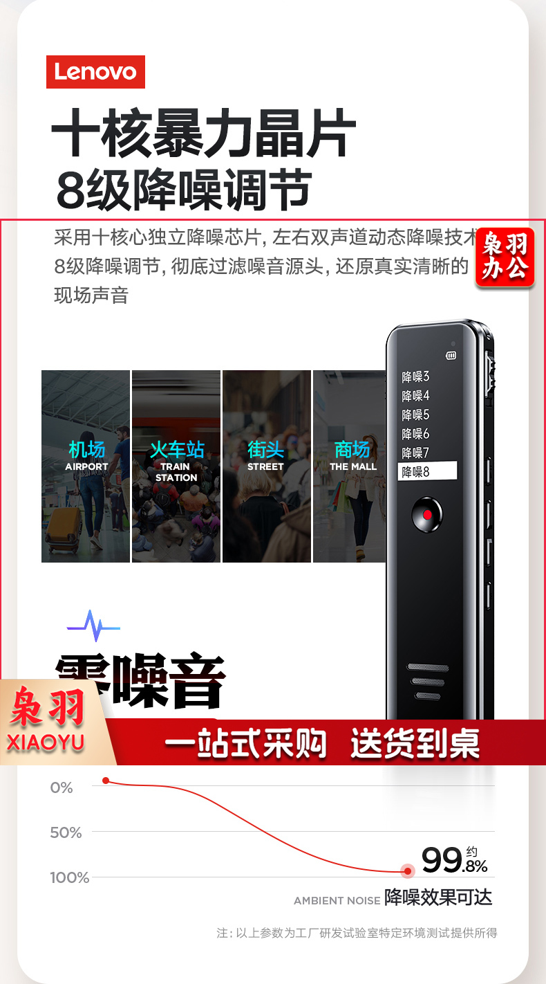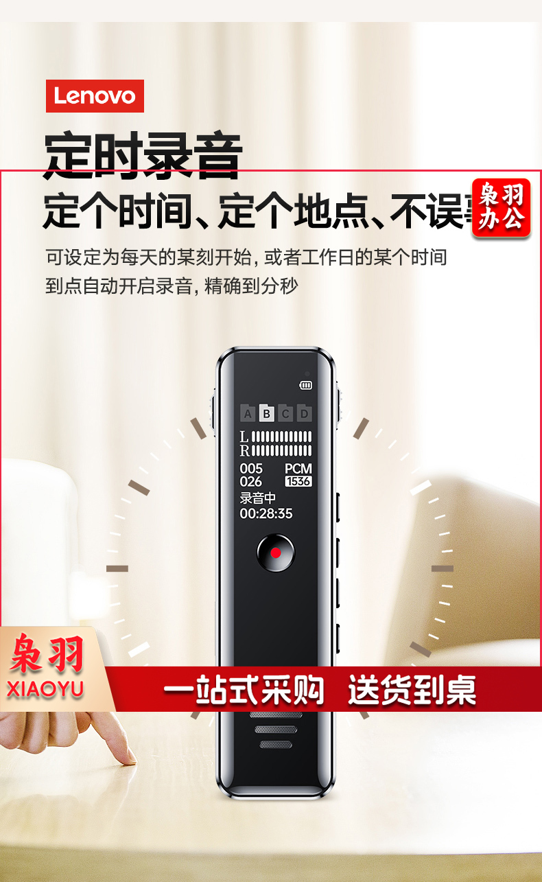联想(Lenovo)录音笔B618 8G专业高清降噪远距声控录音器超长待机学生学习商务采访会议培训