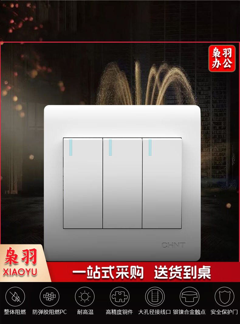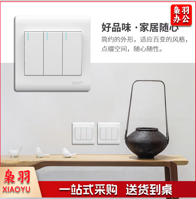 正泰(CHNT)NEW7-Z00600 插座面板86型墙壁开关 7Z象牙白 三开双控