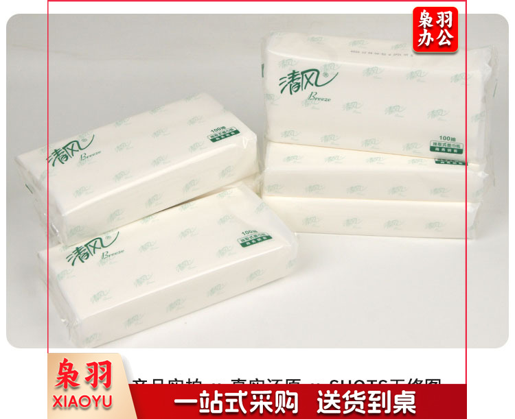清风 抽纸 加长家用商务大号餐巾纸 100抽/包 B312YZ