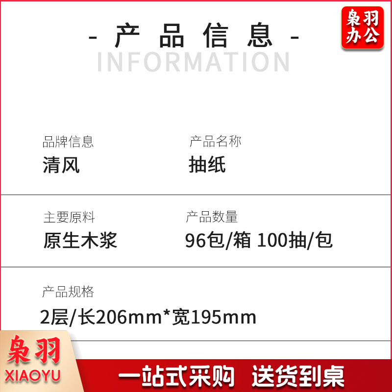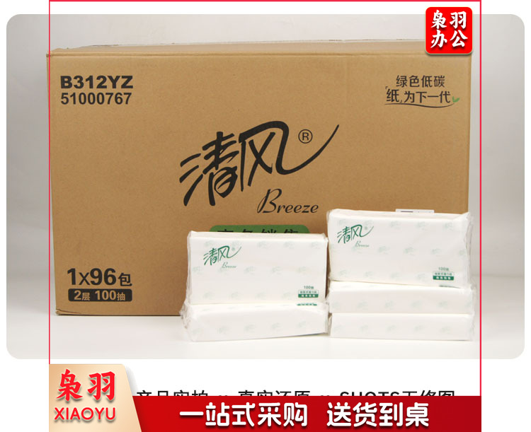 清风 抽纸整箱 加长家用商务大号餐巾纸 100抽/包 96包/箱 B312YZ