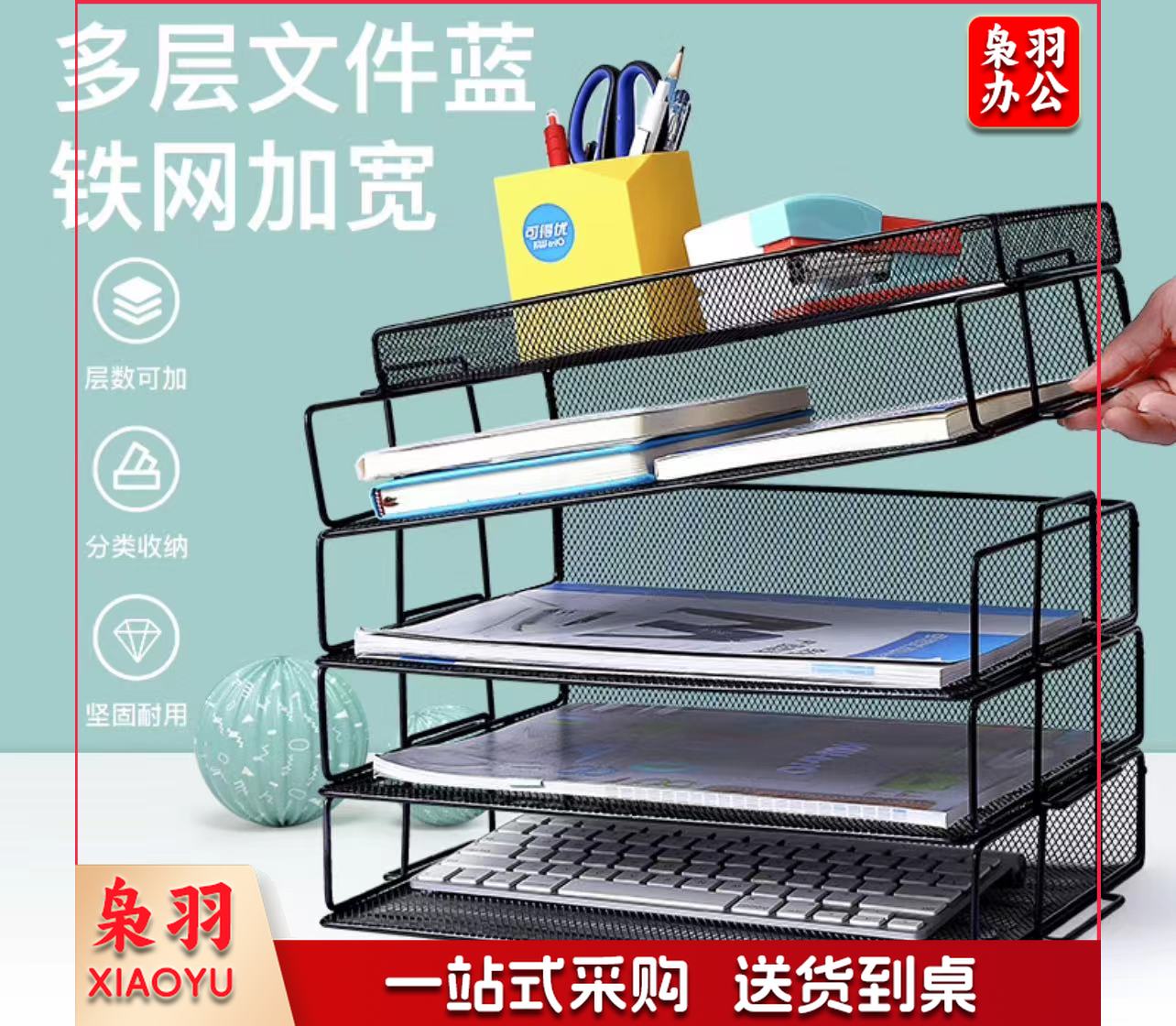 横式自由叠加层数文件架桌面铁网金属烤漆文件栏文件筐文件框文件盘资料架文件框 4层文件架【含托盘】
