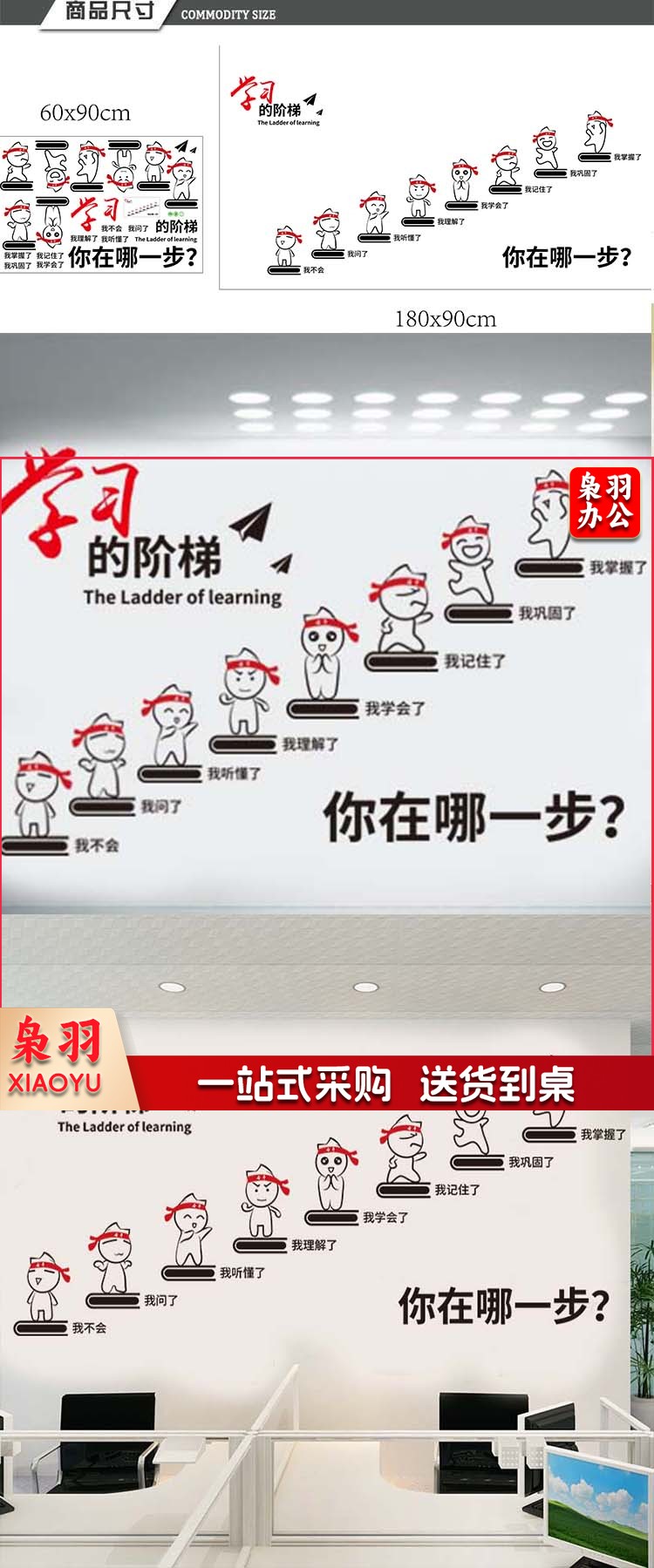 励志墙贴纸贴画教室布置公司企业文化墙办公室装饰品墙壁标语 学习的阶梯励志贴