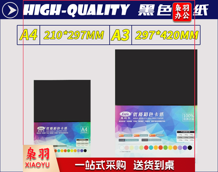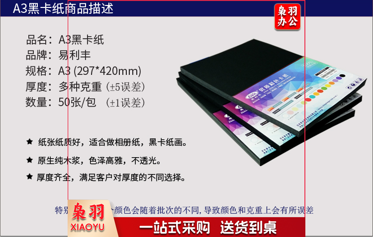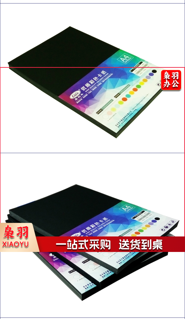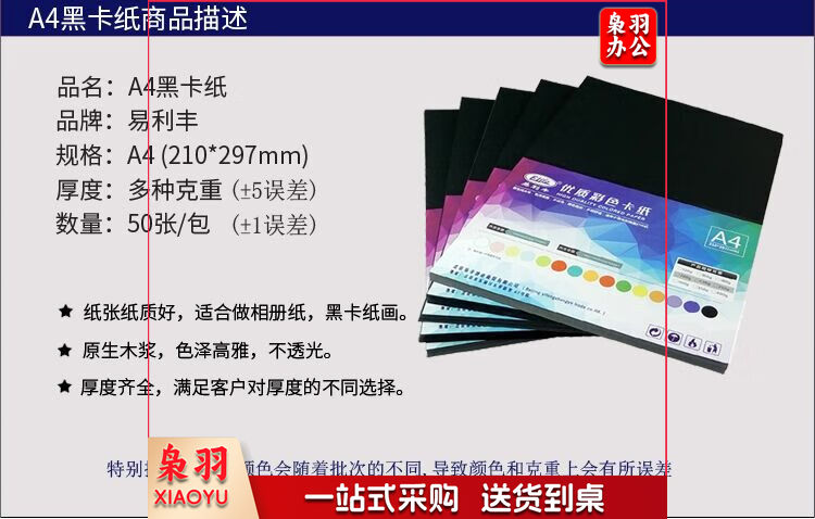 易利丰(elifo)A4-230G 50张黑色卡纸 黑卡纸硬纸厚纸 手工彩纸黑色纸 黑纸打印纸 彩色纸儿童绘画摄影美术纸