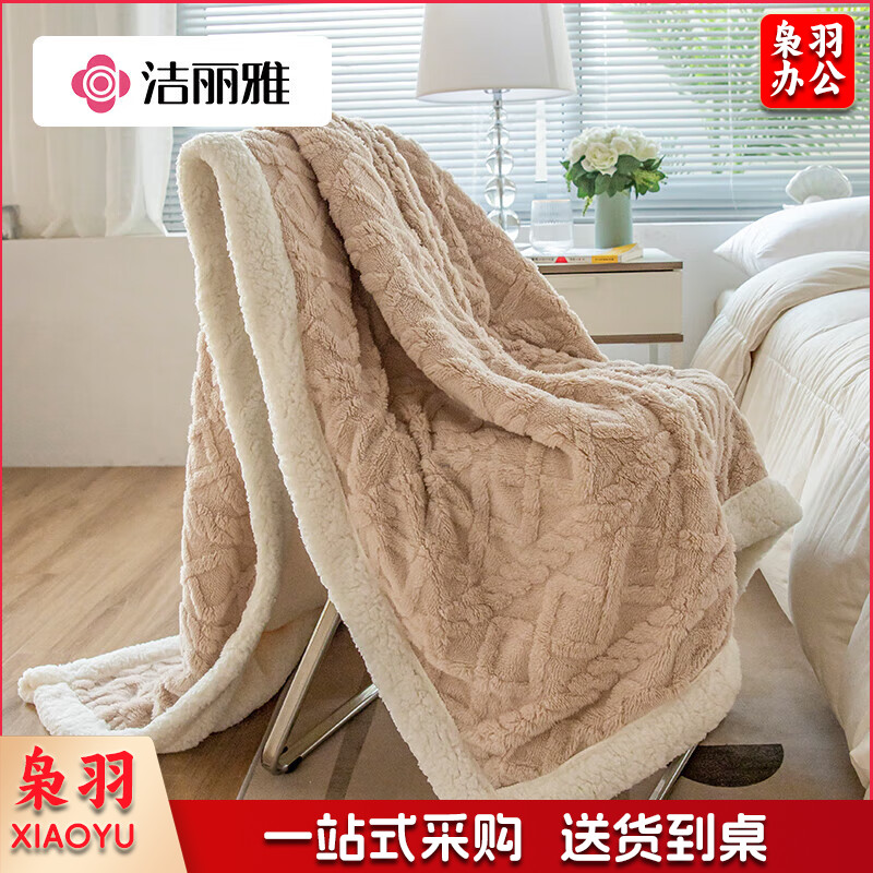 洁丽雅(Grace)塔芙绒毛毯加厚 双面暖绒盖毯宿舍毯子披肩沙发毯午睡毯办公室午休毯 卡其 150*200cm