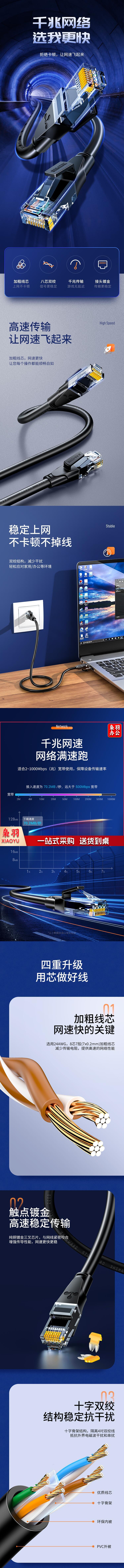 山泽WD6050六类成品网线 CAT6类千兆极速8芯双绞 黑色5米