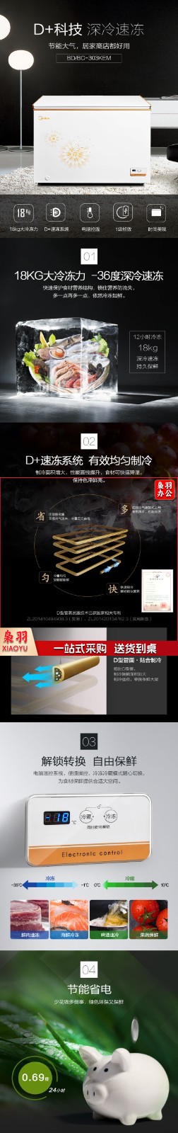 美的(Midea) 商用卧式冷柜大容量冰柜冷藏冷冻柜节能省电大冰柜单温卧式电冰箱 电子控温 303升冰柜 BD/BC-303KEM