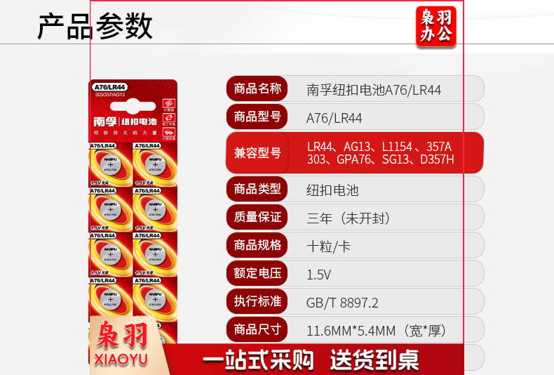 南孚(NANFU)纽扣电池10粒LR44/AG13/A76/L1154/357A/手表电池/计算器电池/电子玩具电池