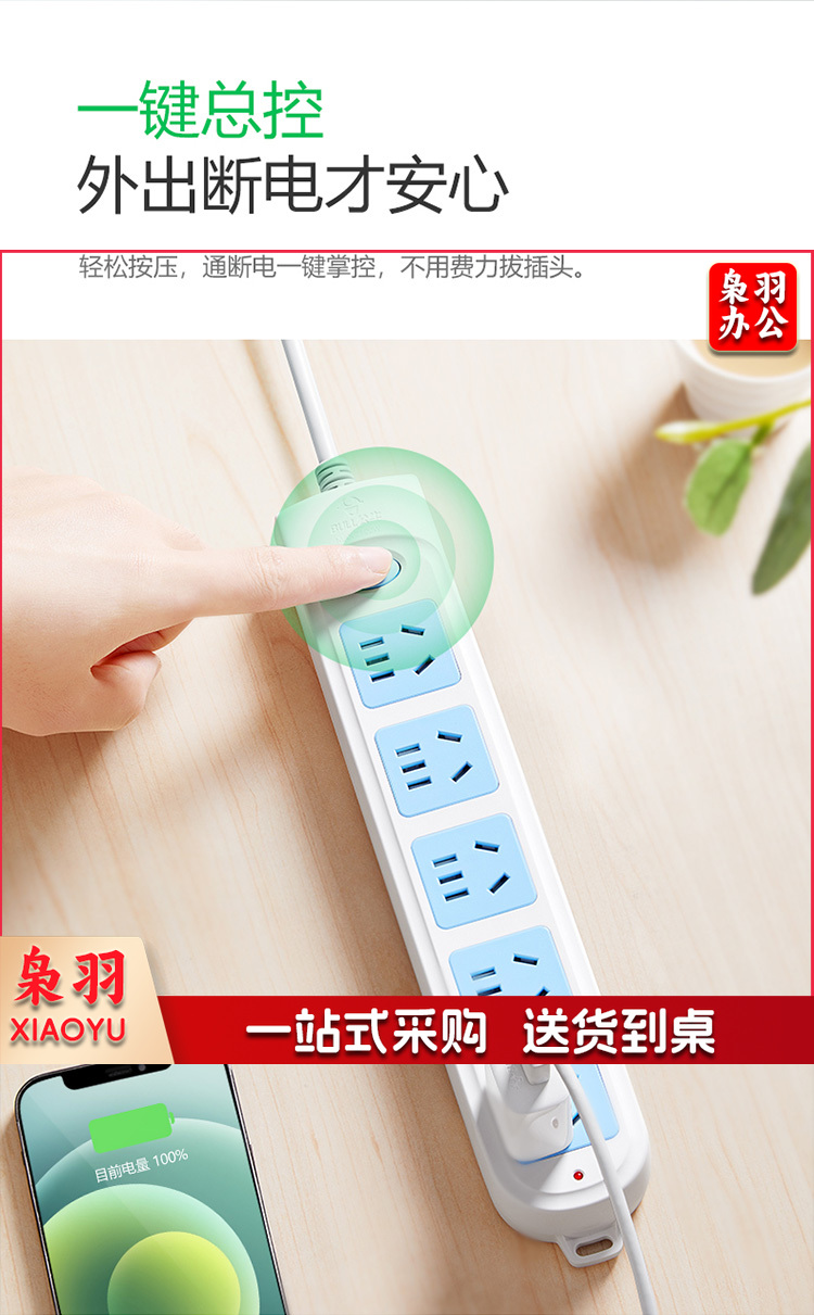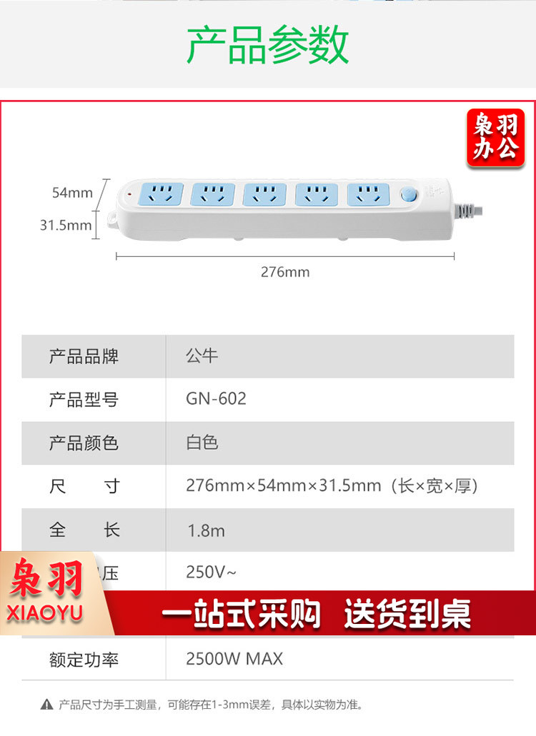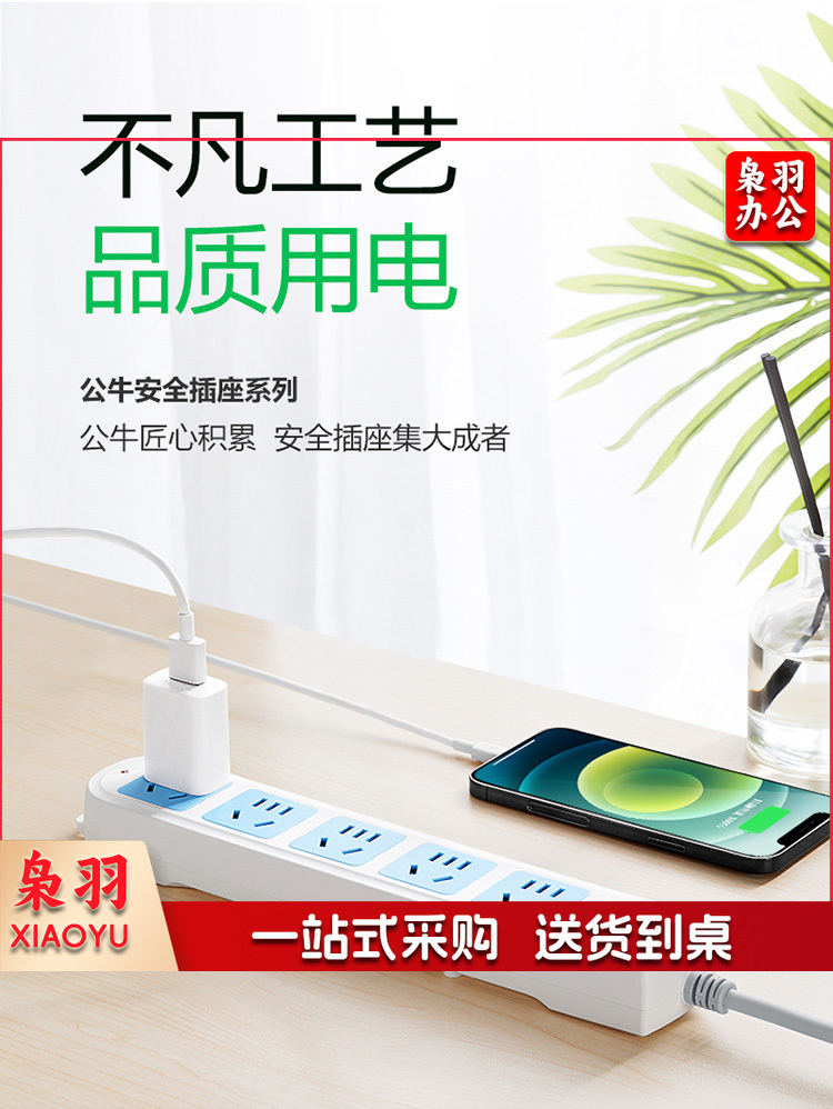 公牛(BULL)新国标插座 插线板/插排/排插/接线板/拖线板 5位总控全长1.8米 GN-602