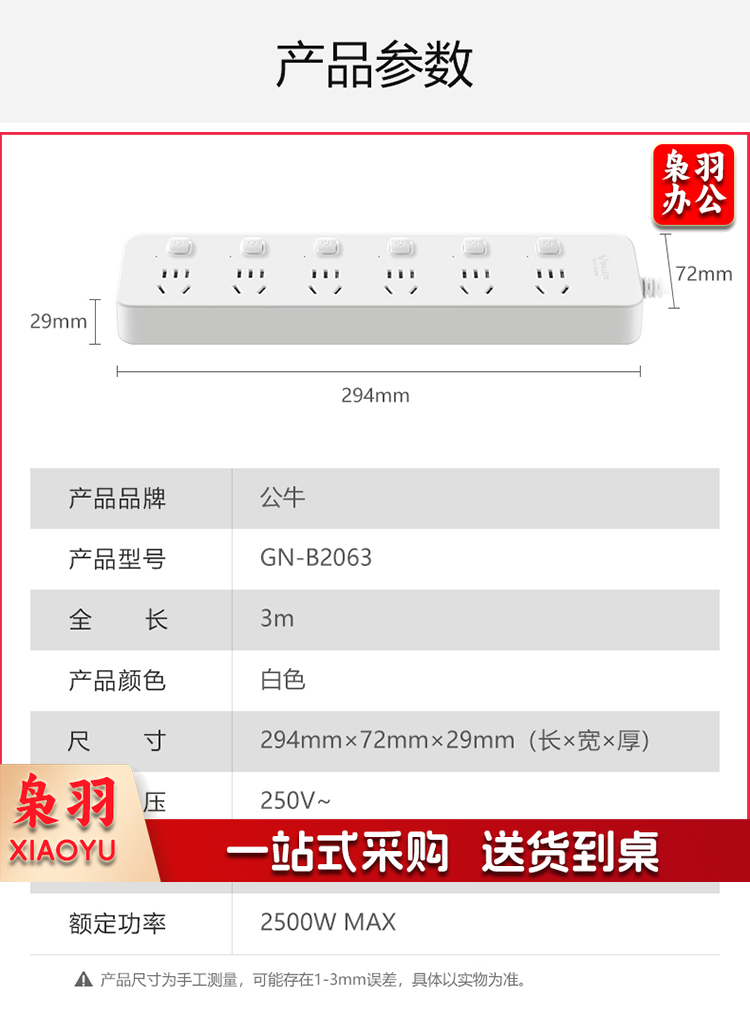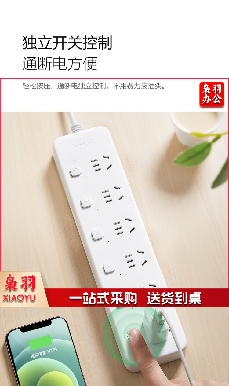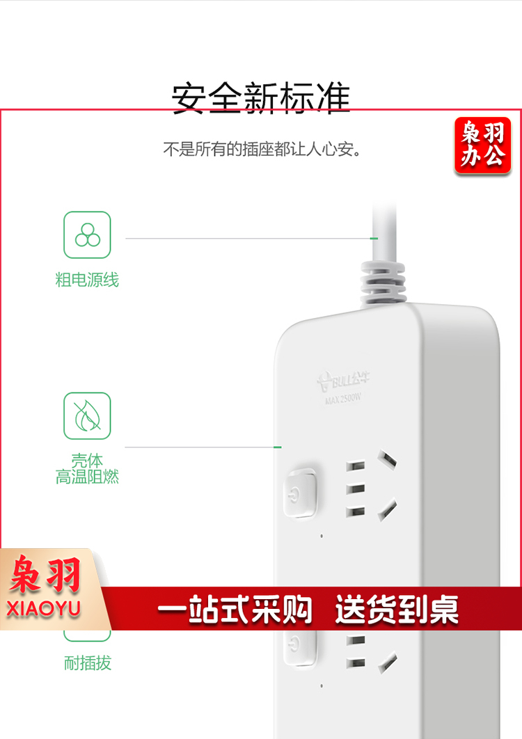 公牛(BULL)新国标分控插座/插线板/插排/排插/接线板/拖线板 GN-B2063 6位分控全长3米 独立开关