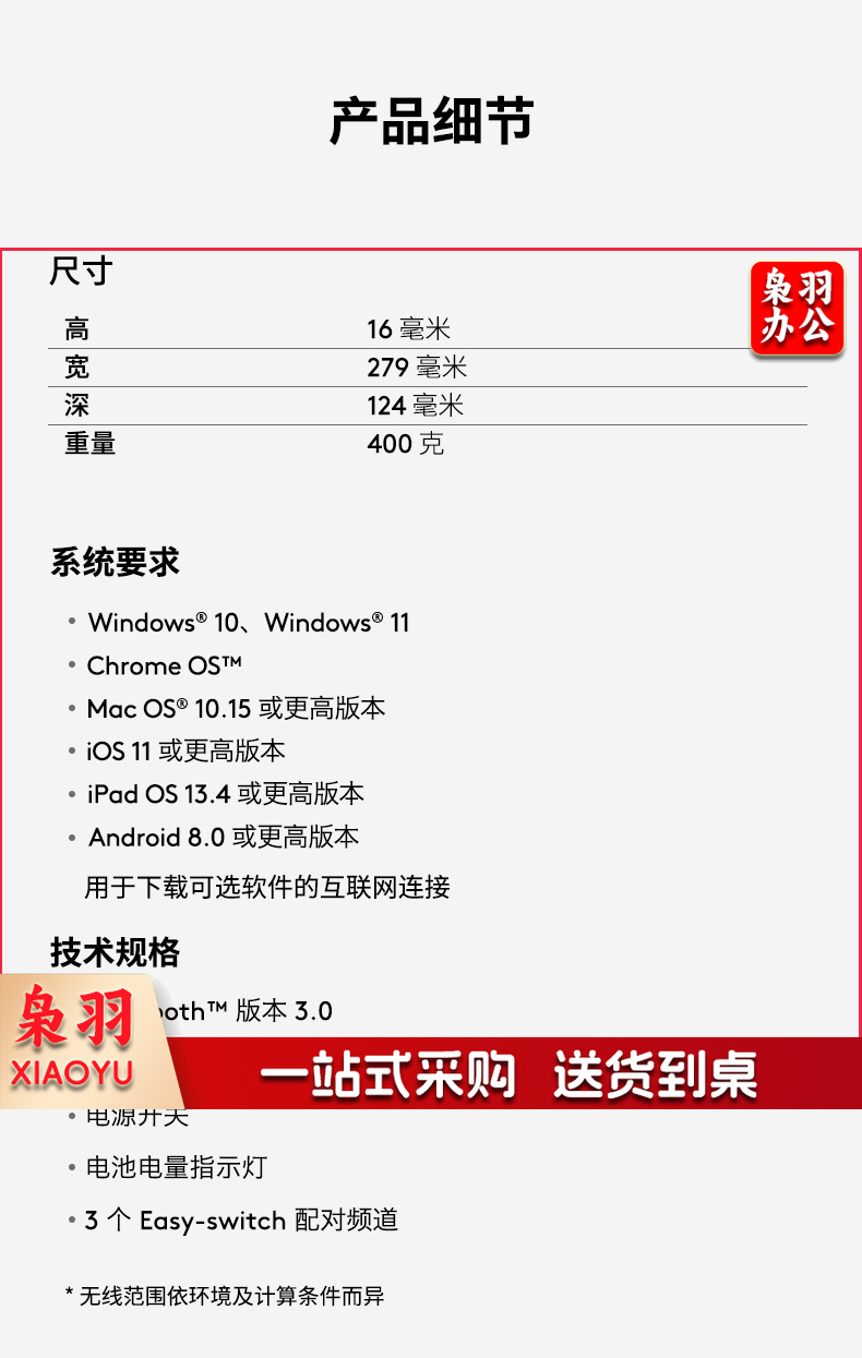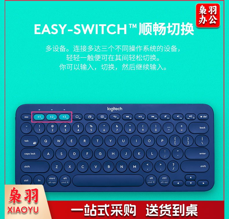 罗技(Logitech)K380 键盘 蓝牙键盘 蓝色
