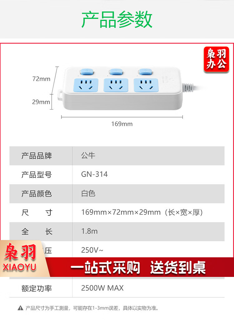 公牛(BULL)GN-314 插座/插线板/插排/排插/接线板/拖线板 3位分控全长1.8米
