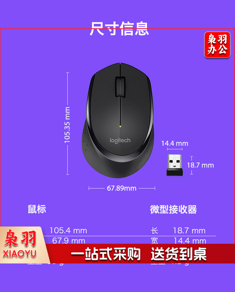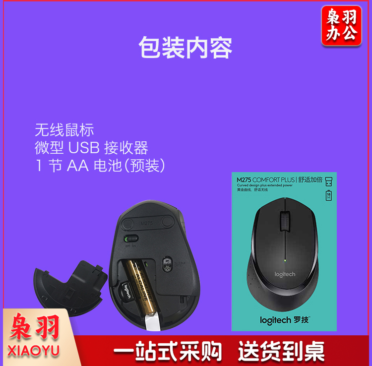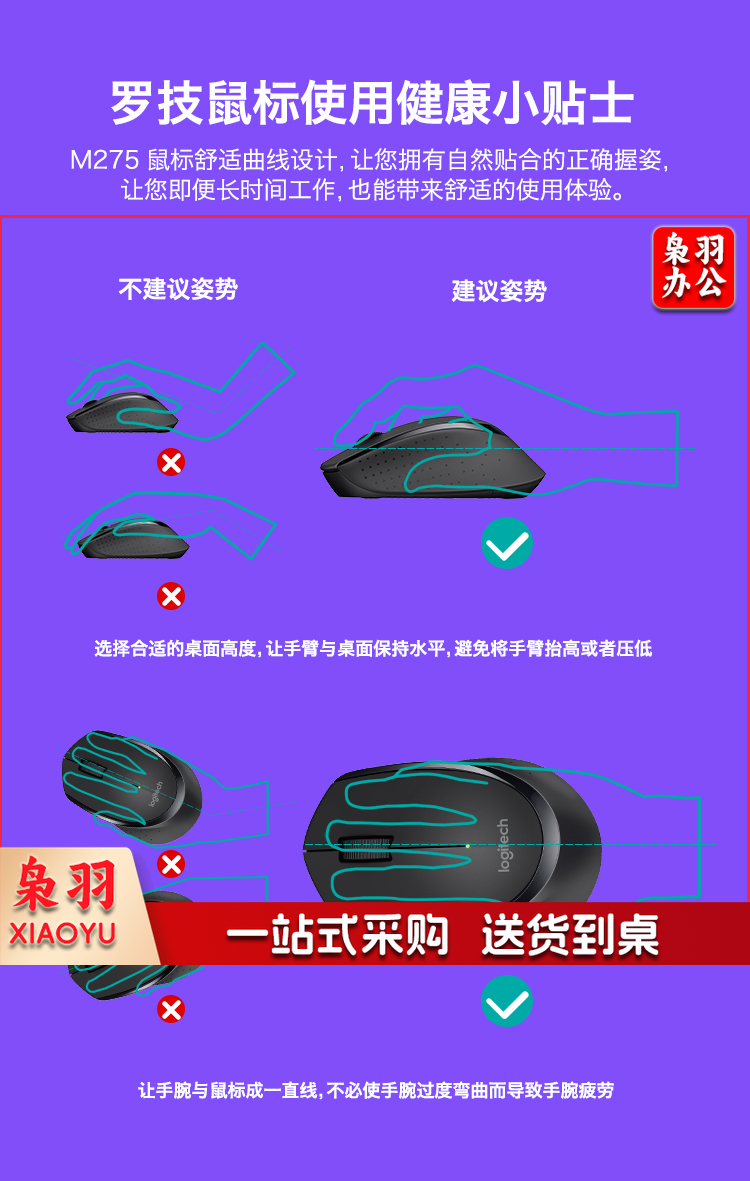罗技(Logitech)M275 鼠标 无线鼠标 办公鼠标 右手鼠标 灰色 带无线2.4G接收器
