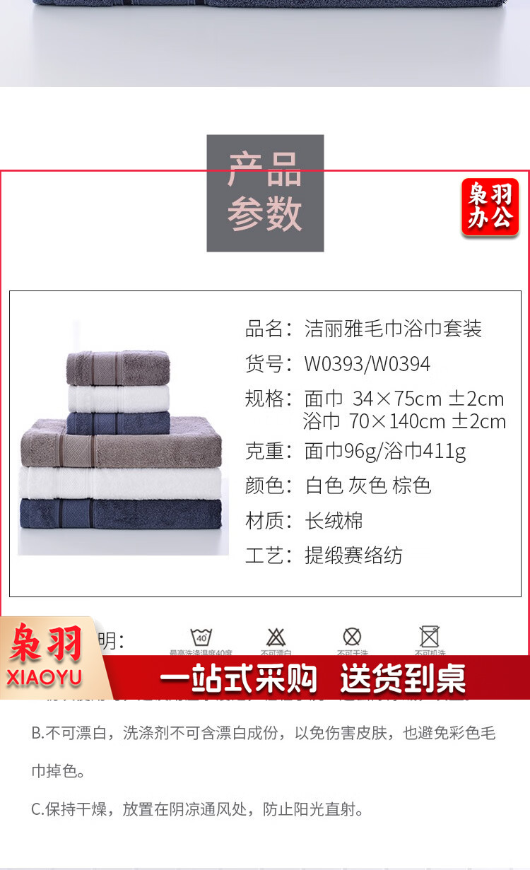 洁丽雅(grace)W0394/w0393 *长绒棉 毛圈 毛巾浴巾套装 一浴巾两毛巾套装 礼盒装