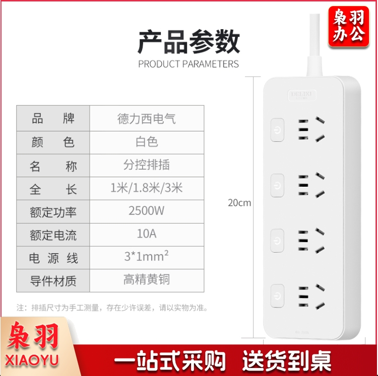 德力西(DELIXI)新国标分控插座/插排/排插/插线板/插板/接线板/拖线板 4位分控全长1.8米J-E4K4X/B