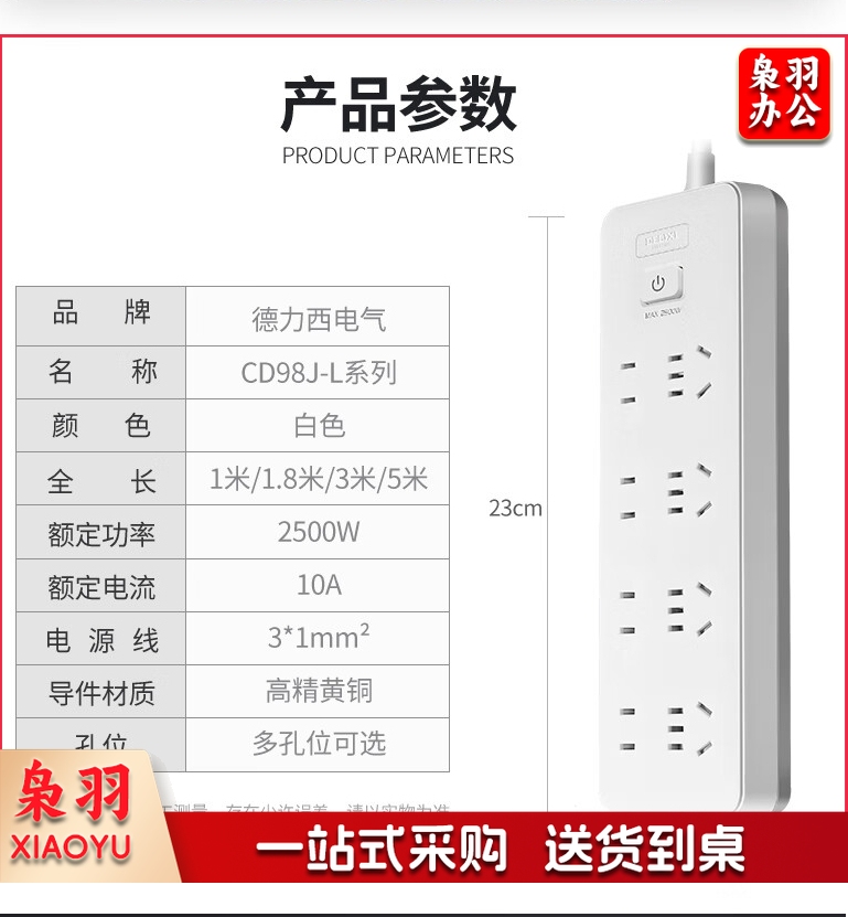 德力西(DELIXI)新国标插座 插线板/插排/排插/拖线板/插板/接线板 4位总控 1.8米 K2X2Z