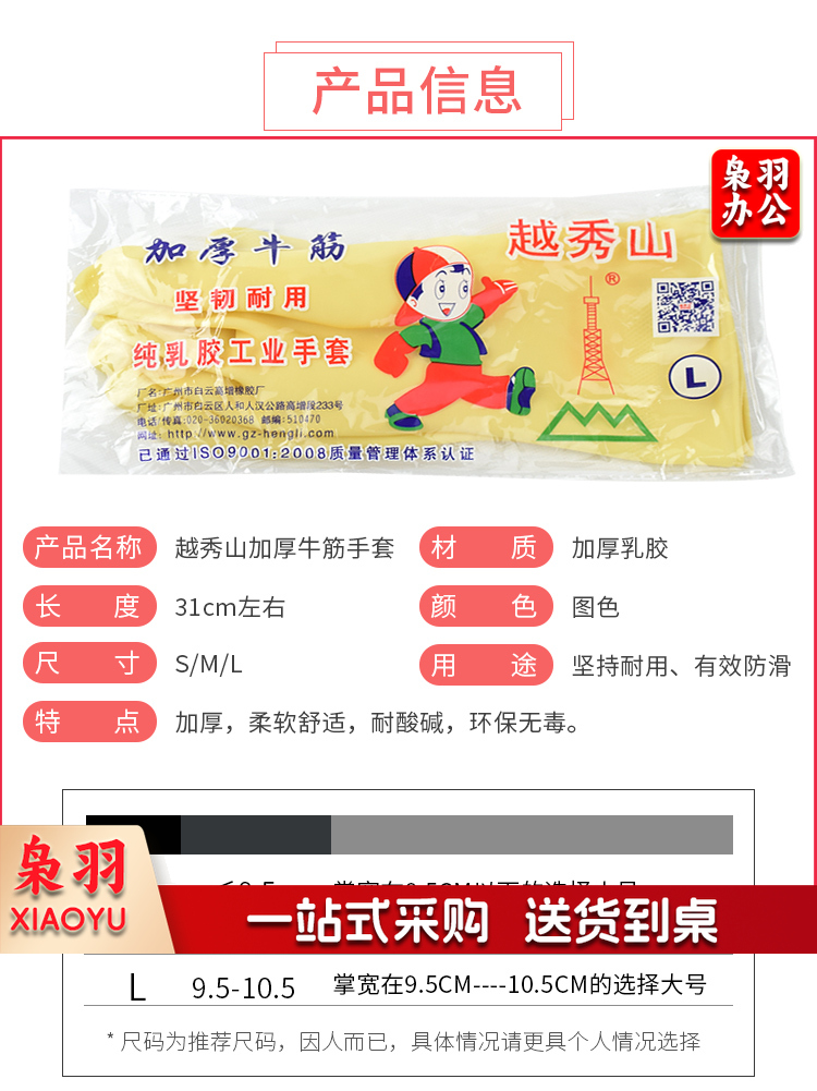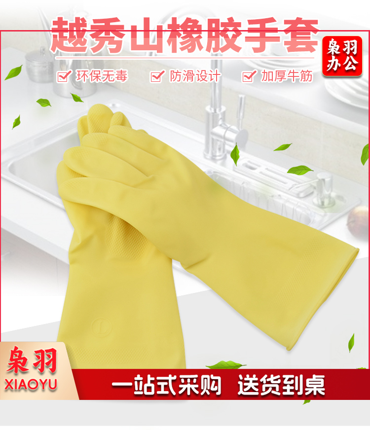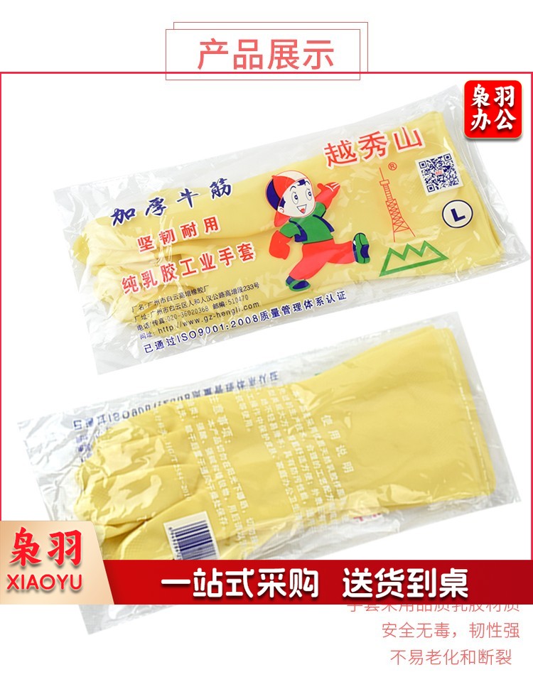 越秀山橡胶加厚牛筋乳胶手套洗碗防水防滑耐磨耐用工作胶皮塑胶套