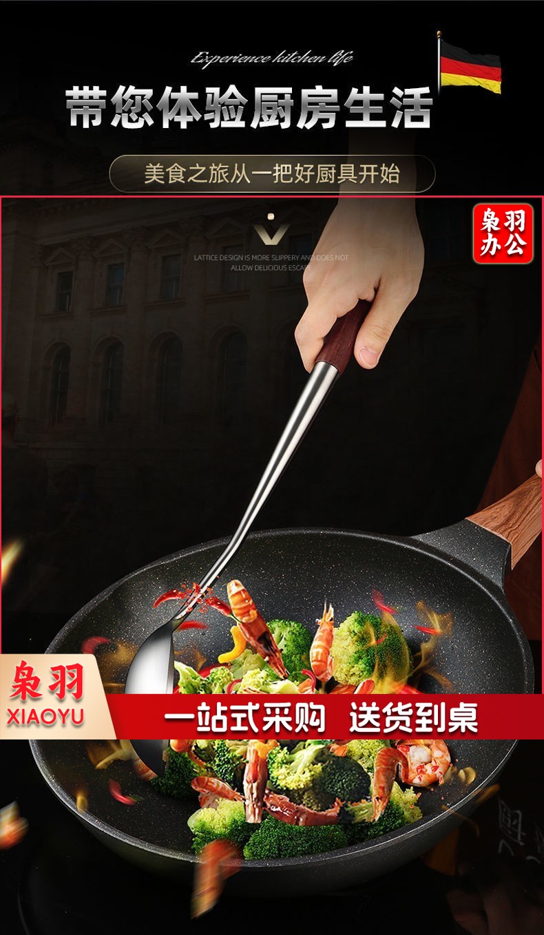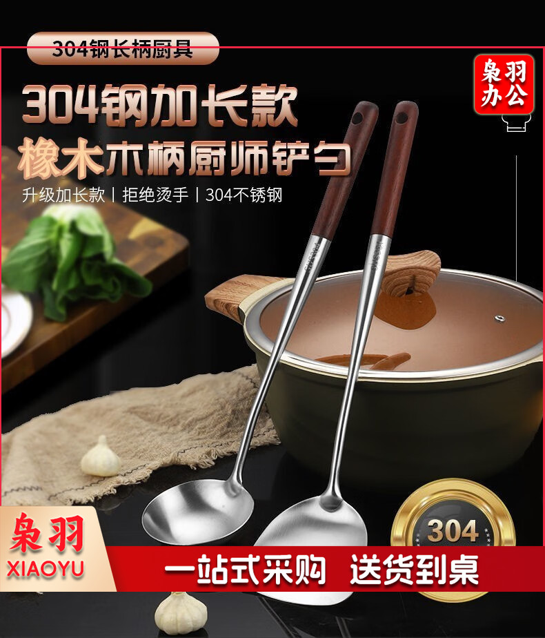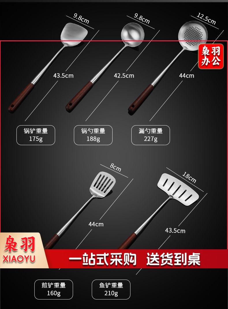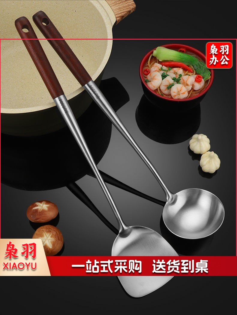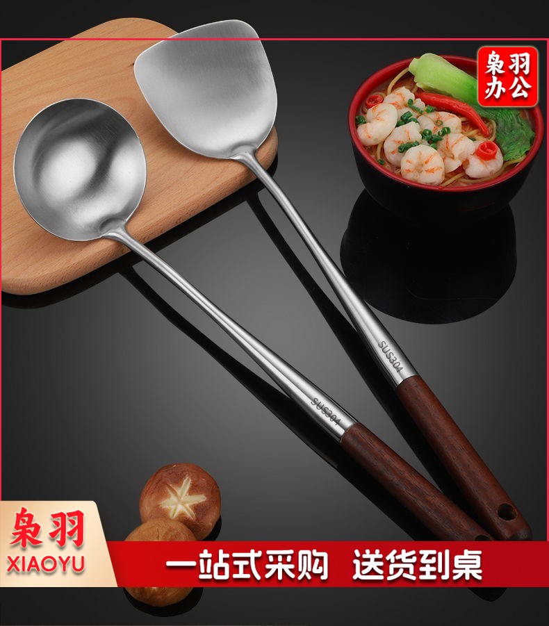 304不锈钢炒勺厨师专用勺铲套装长柄家用厨房炒菜汤勺锅勺子大号 304加厚加长款 锅勺