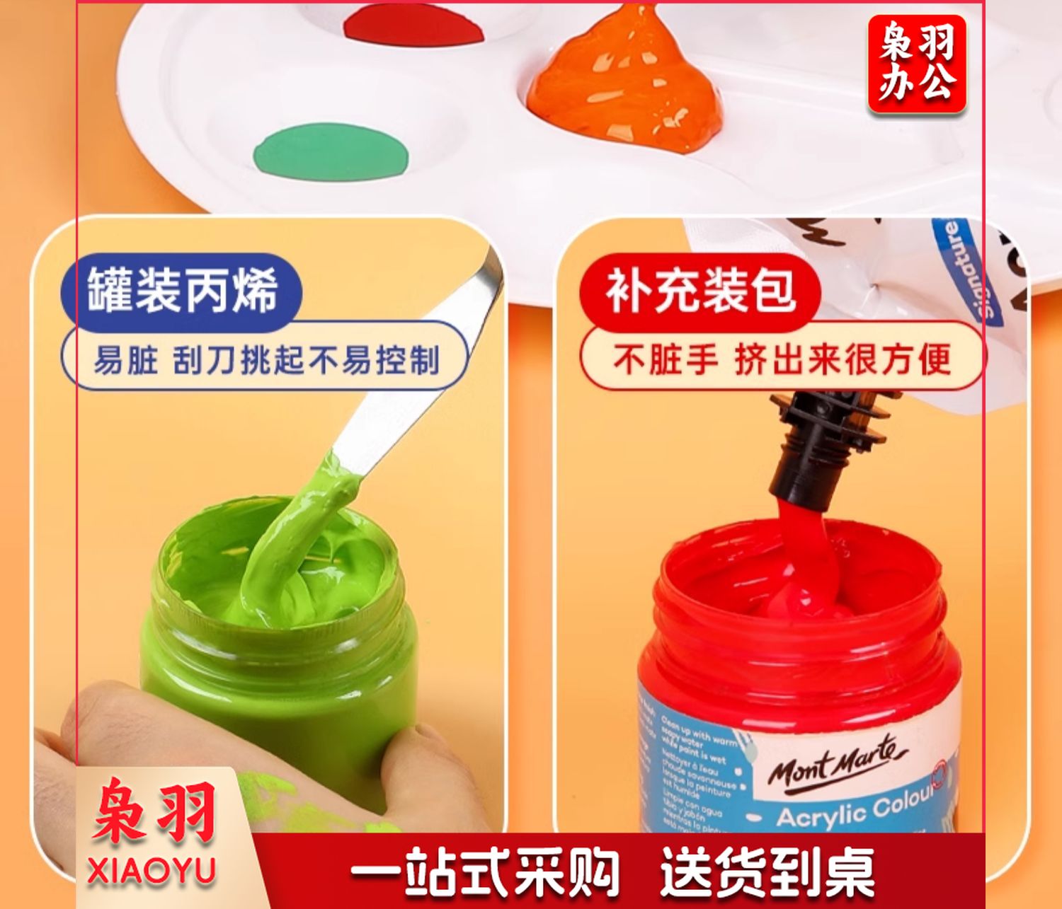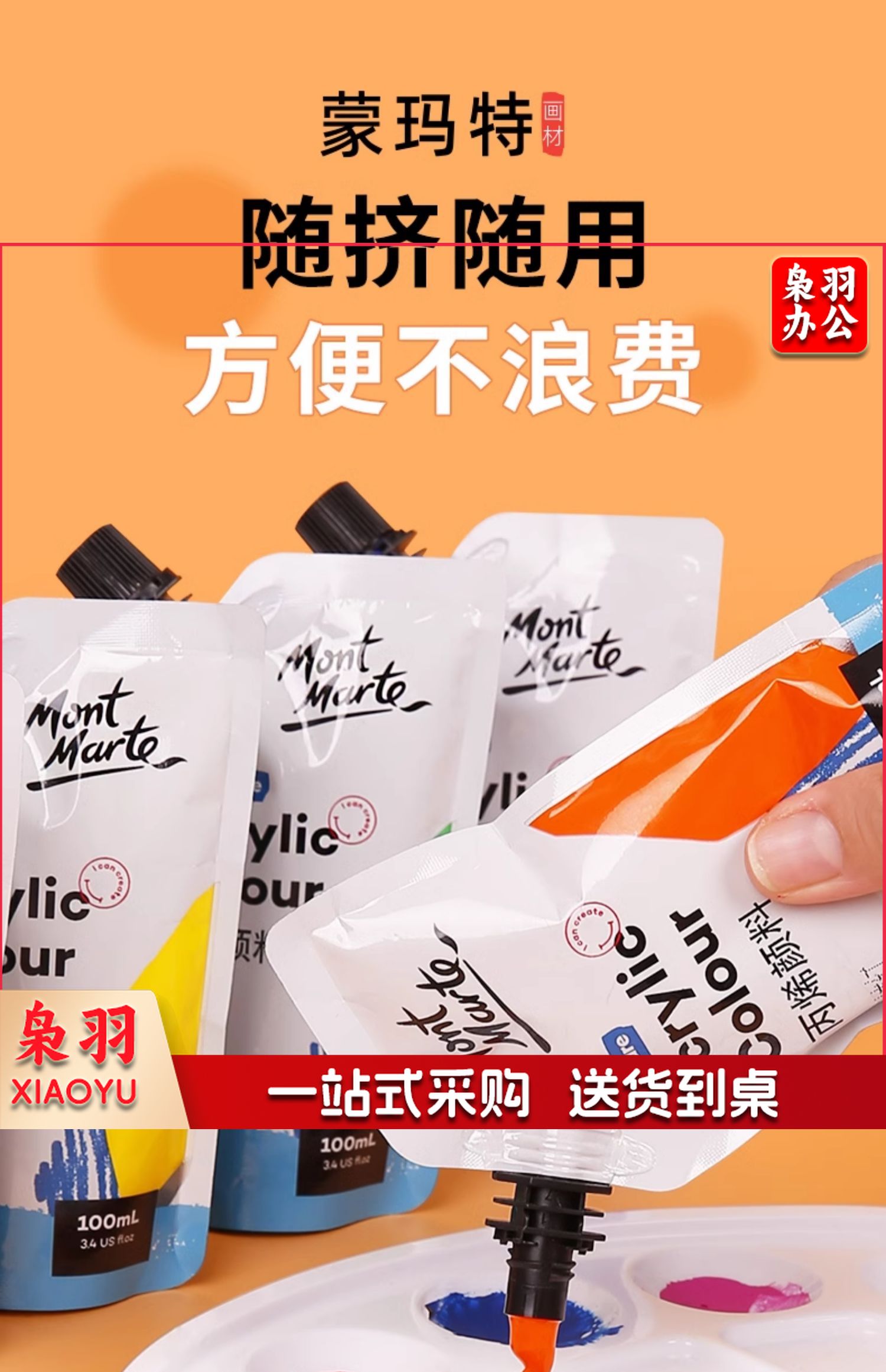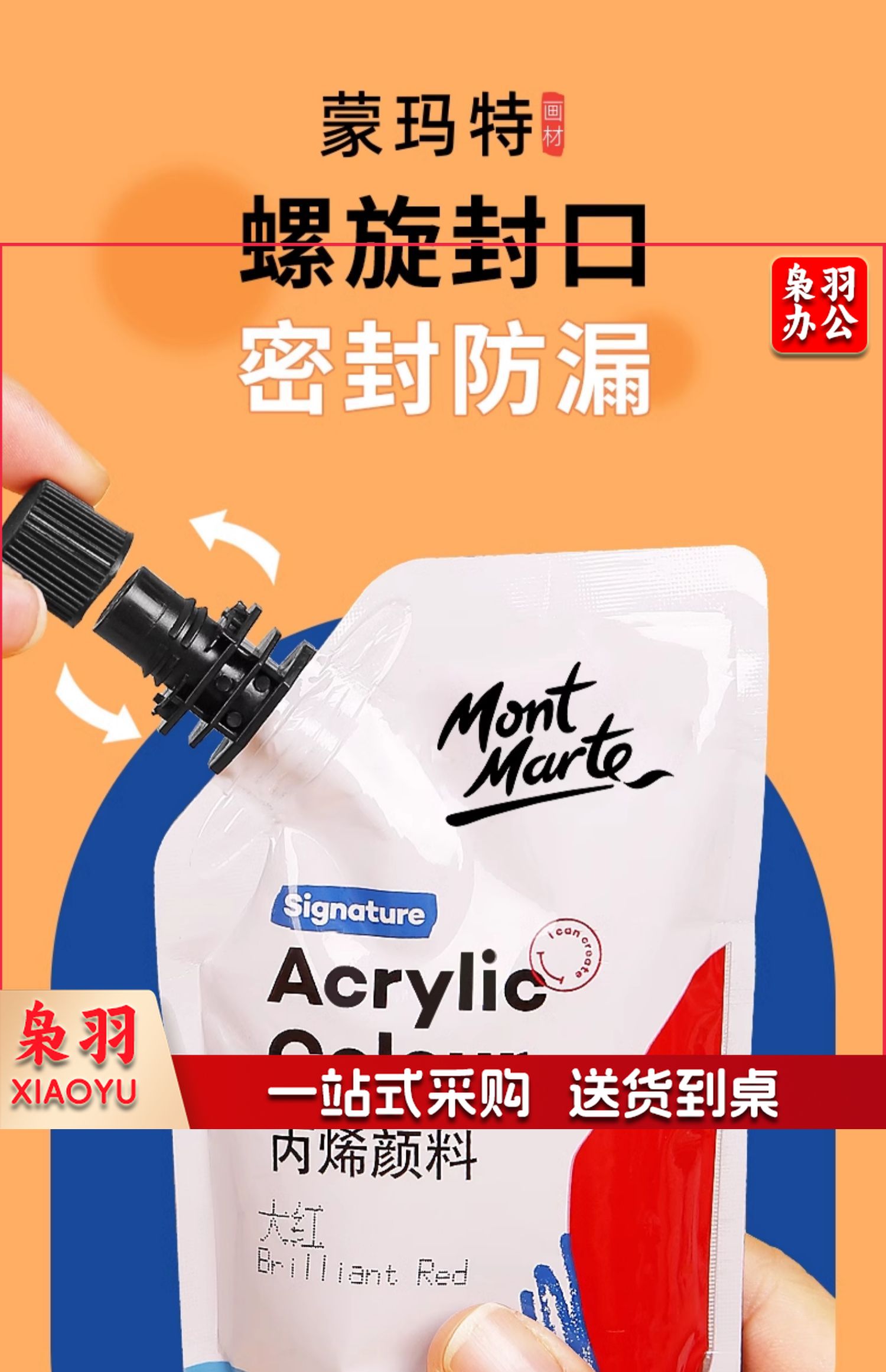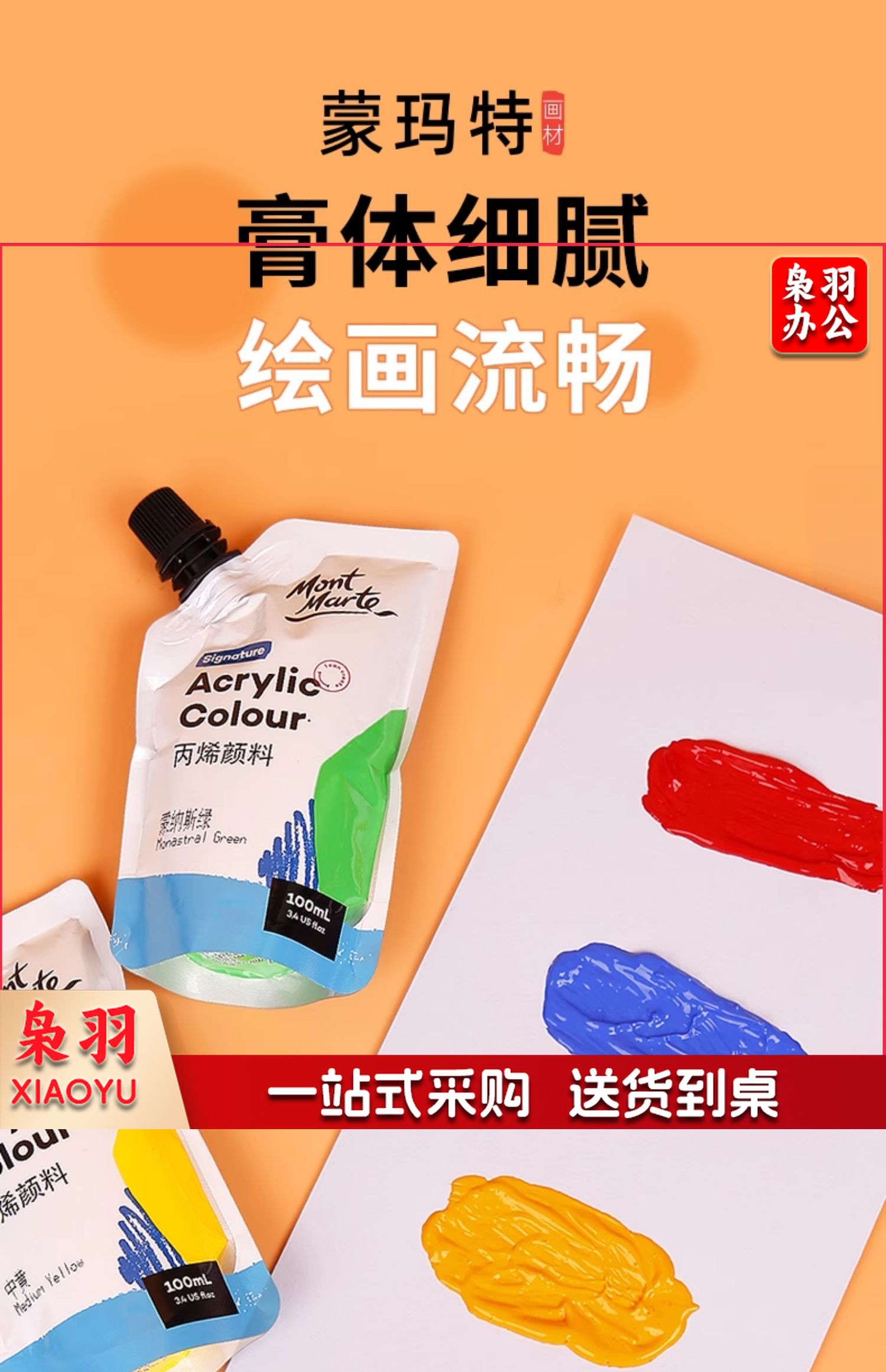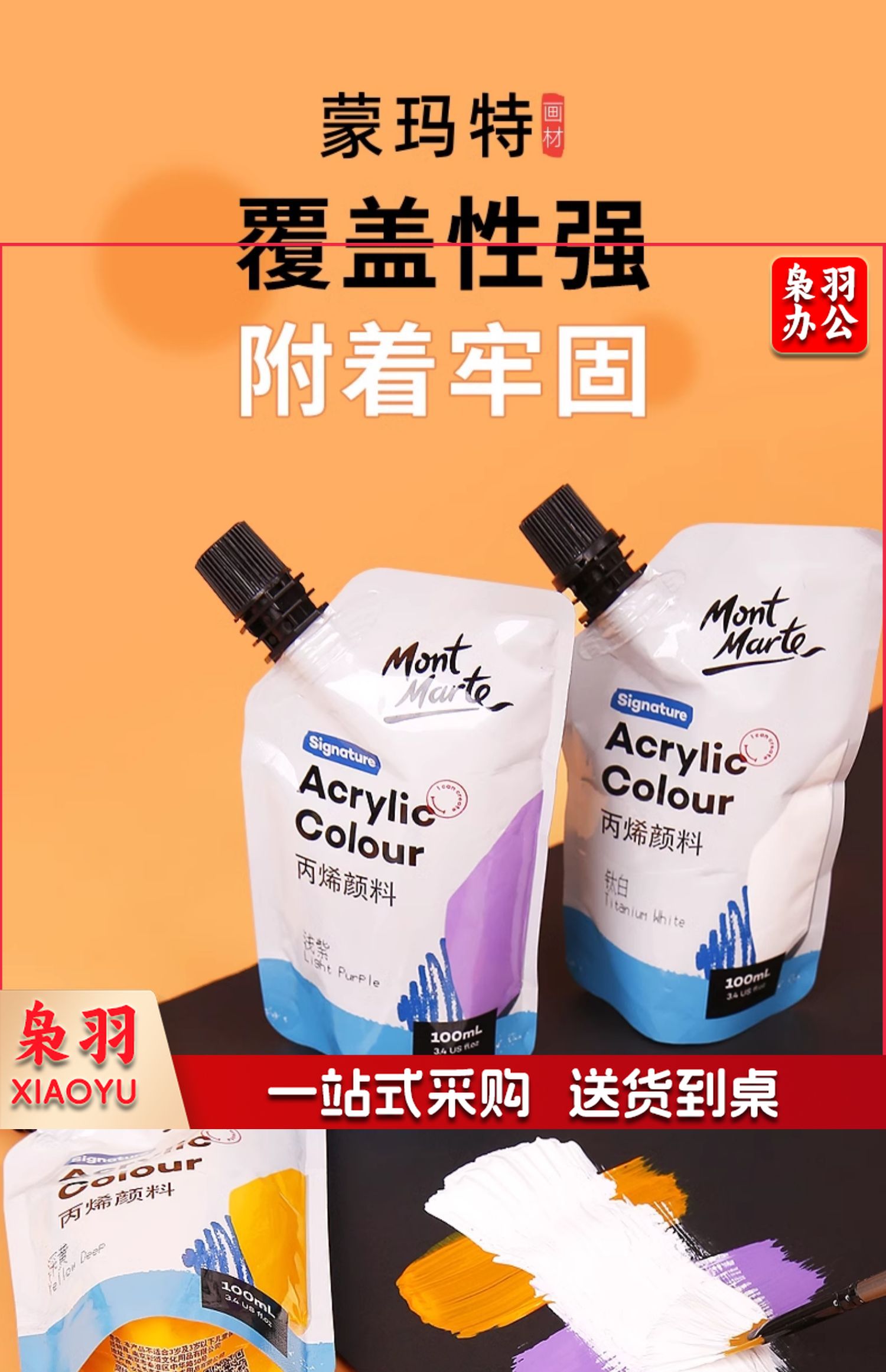 蒙玛特 丙烯颜料袋装自立袋100ml手绘涂鸦彩绘DIY石头T恤球鞋防水上色纺织颜料画画染料手工颜料补充装补充包36色套装