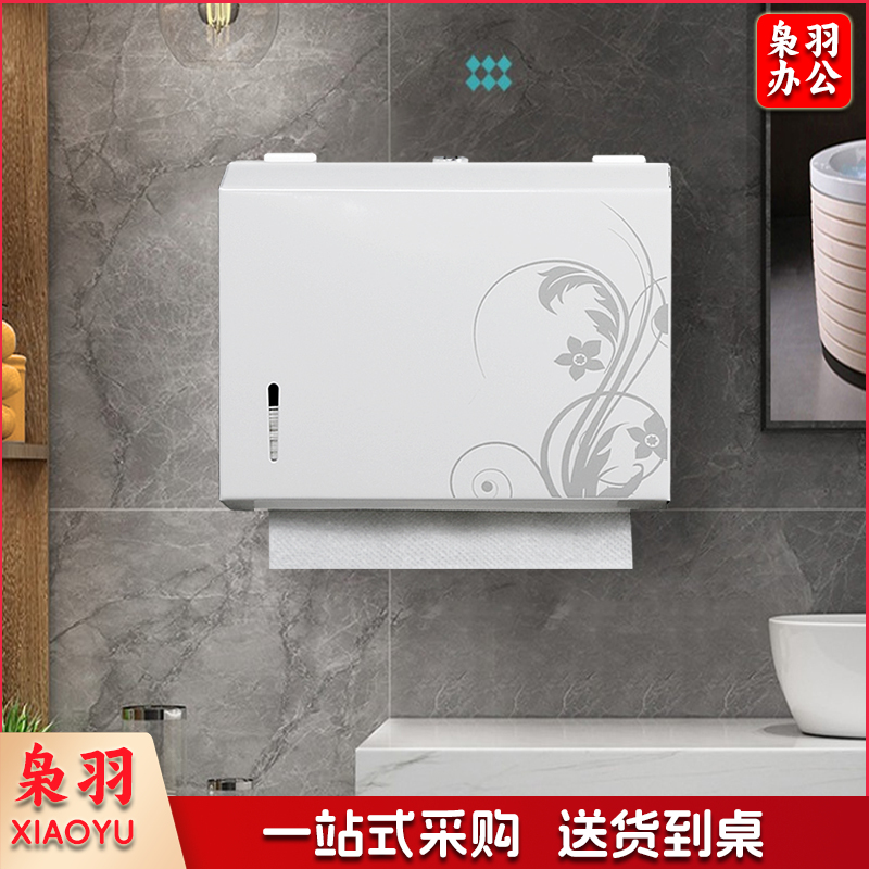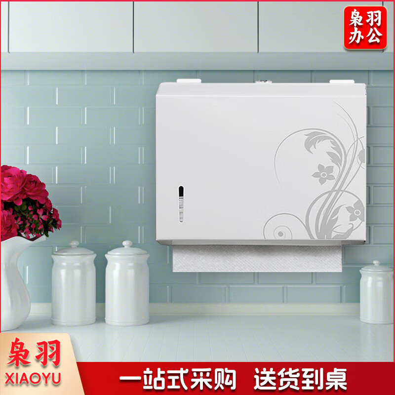 不锈钢擦手纸盒酒店卫生间厕纸架家用厨房壁挂抽纸盒免打孔手纸盒 烤漆白花-无指纹+20包纸(打孔/免打孔)