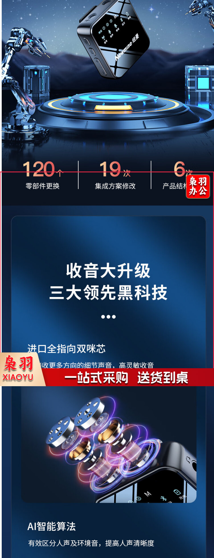 纽曼MC206无线领夹麦克风 专业降噪小蜜蜂收音器一拖二