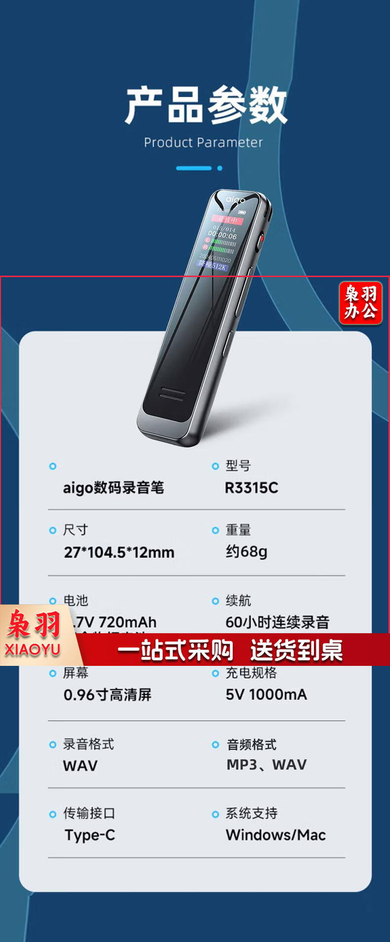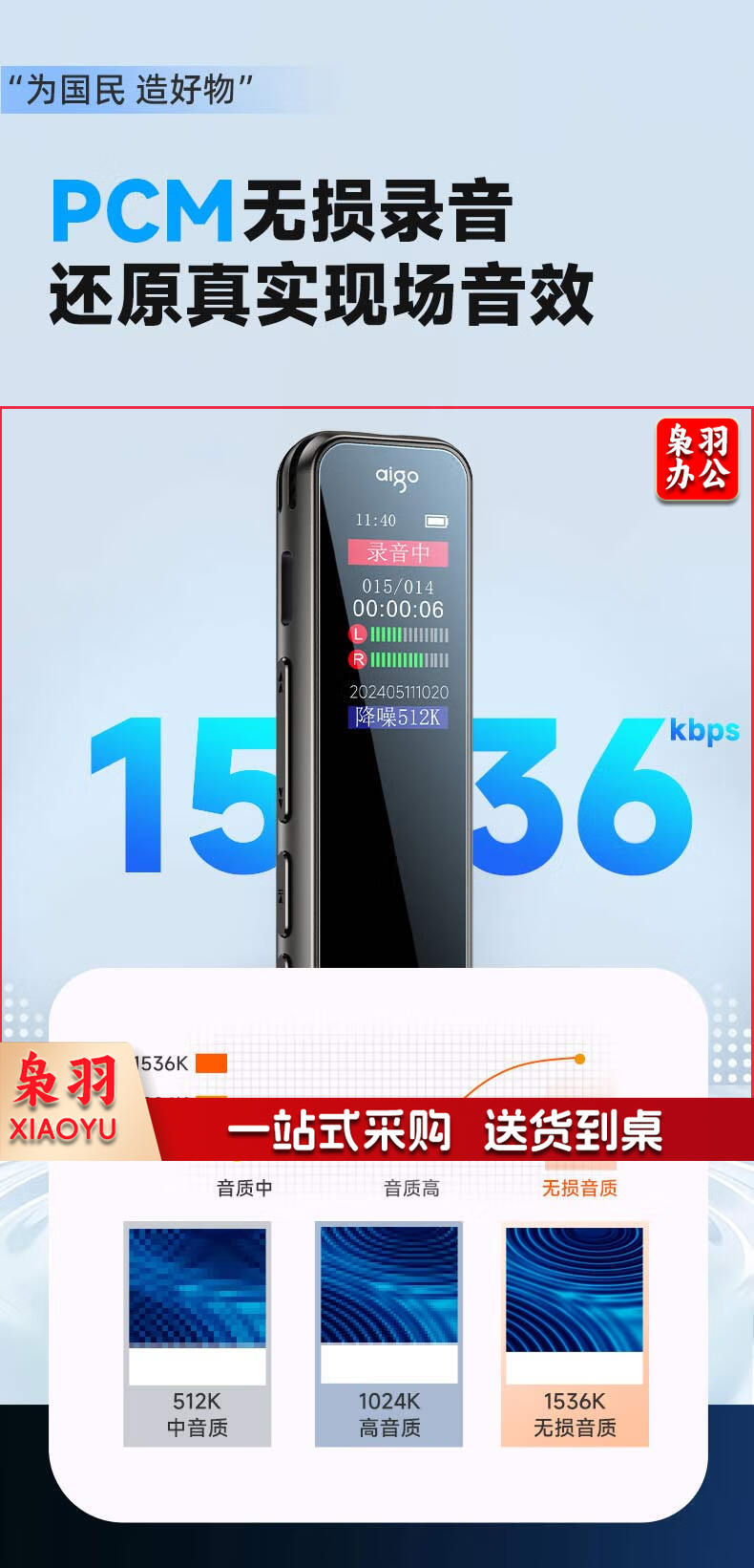 爱国者(aigo)录音笔R3315C 16G一键录音专业普及型高清降噪 学习培训商务会议采访