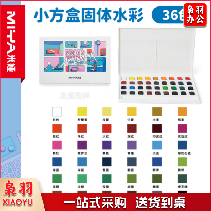 米娅(MIYA)固体水彩颜料36色自来水笔工具 水彩透明水粉画套装
