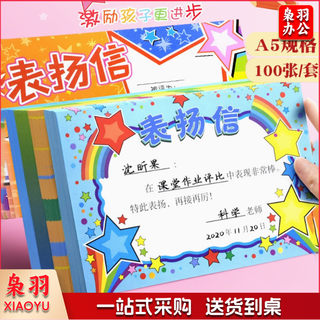 幼儿园荣誉奖状儿童喜报A5铜版纸 奖状 100张/套