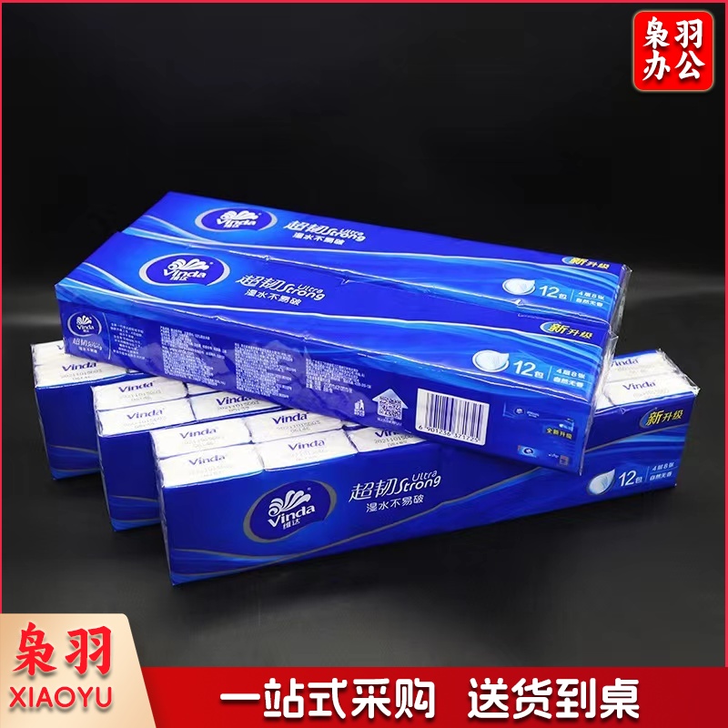 维达 Vinda 自然无香超韧纸巾4层 手帕纸 餐巾纸 12包/条