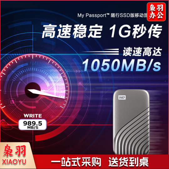 WDBAGF0020BGY 西部数据(WD)移动硬盘固态 外接nvme高速 随行PSSD兼容MAC 金属Type-C口AES加密 深空灰(传输速度1050MB/s) 2TB