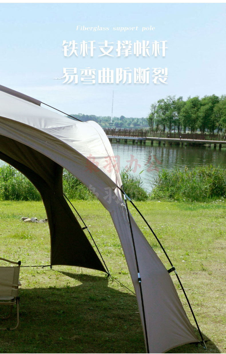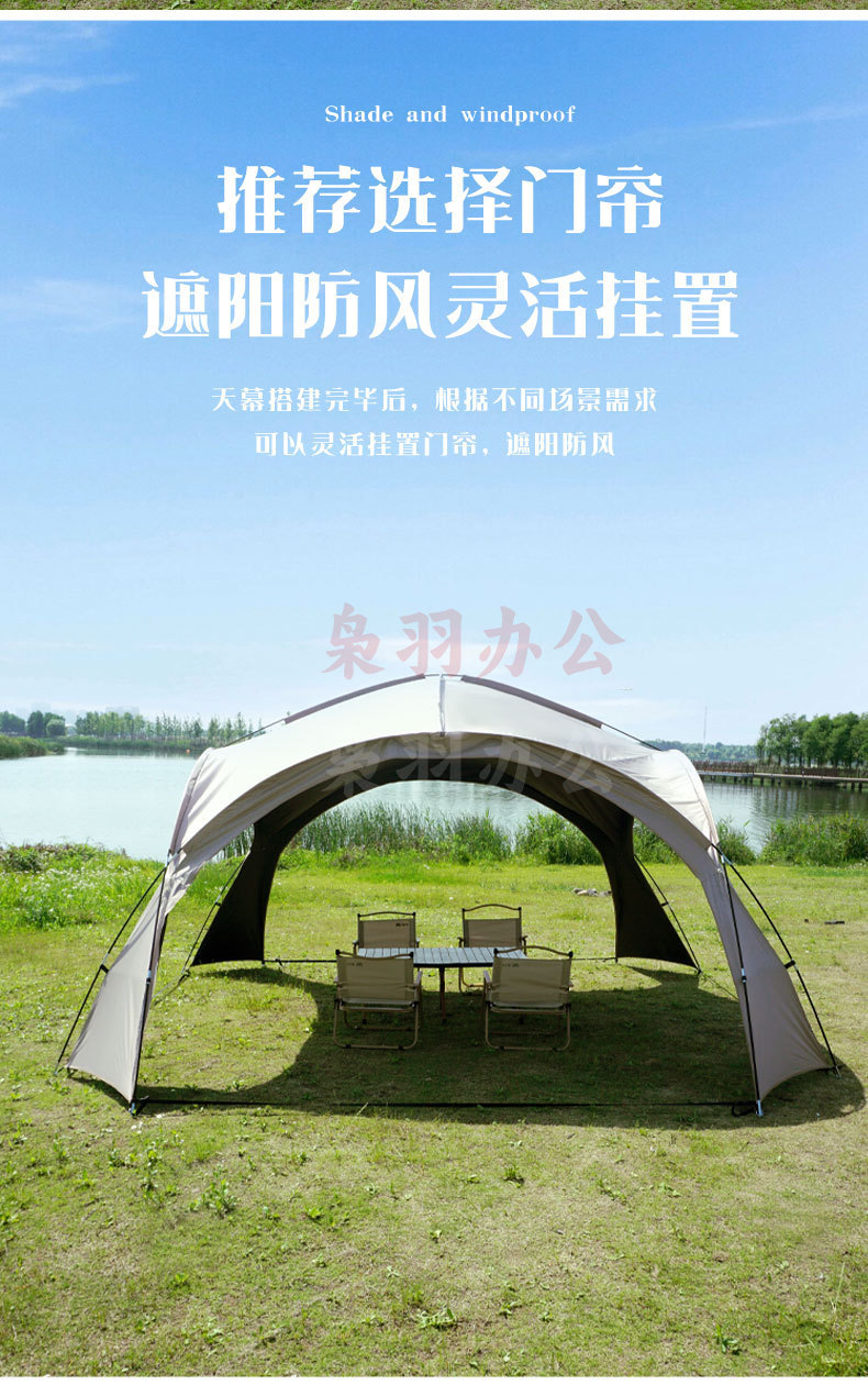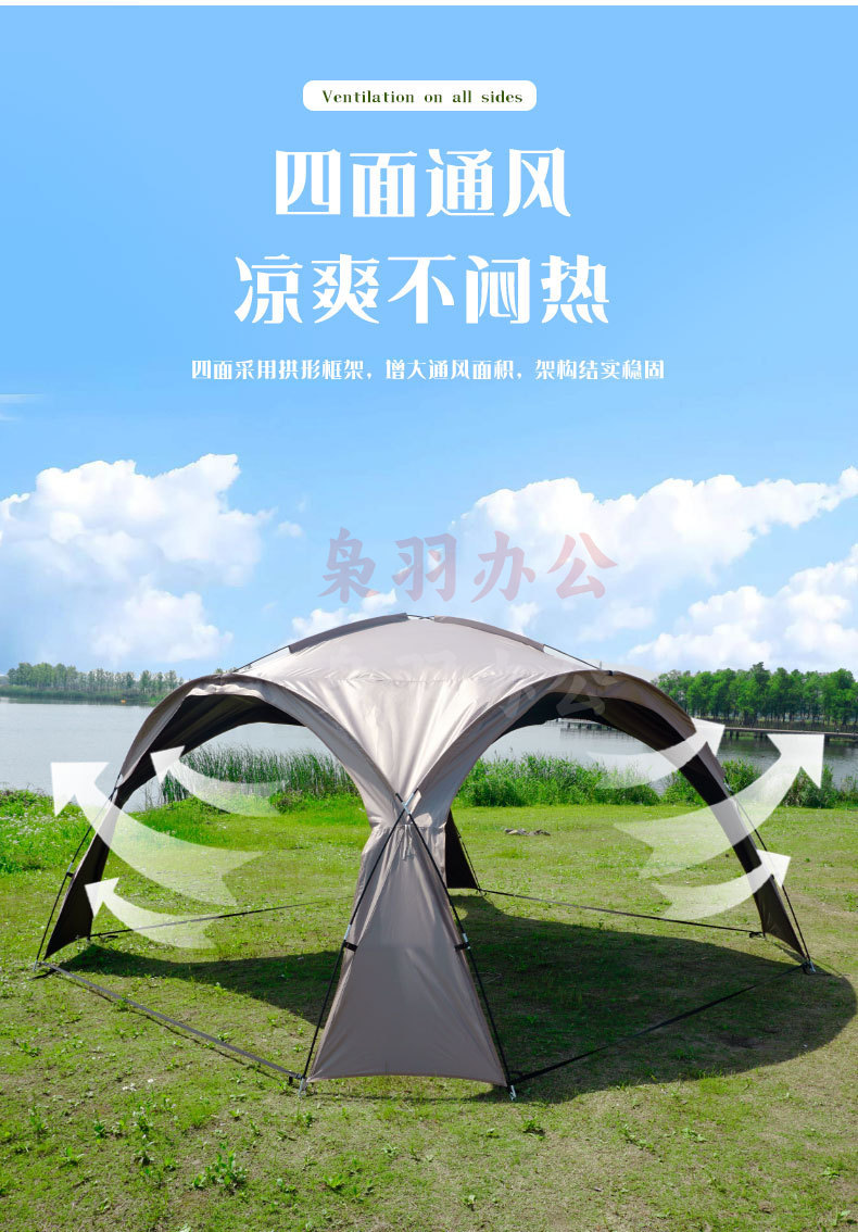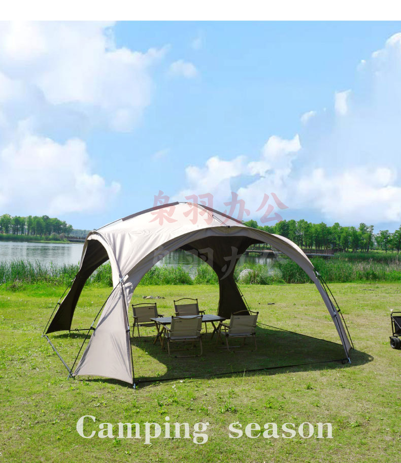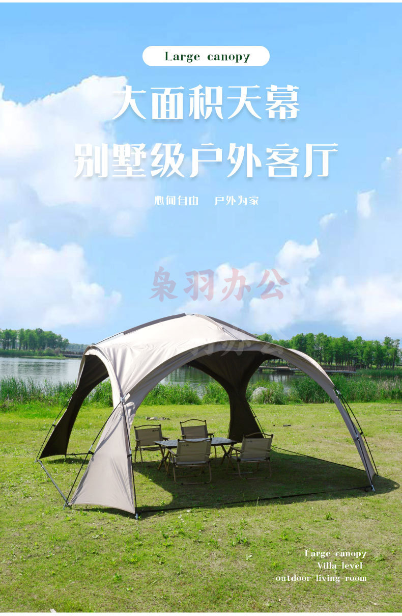 穹顶天幕超大遮阳棚户外野营野餐公园露营帐篷便携式防风防雨天幕 扣子款咖色穹顶天幕(全遮光黑胶)5-8人(420*420*240cm)