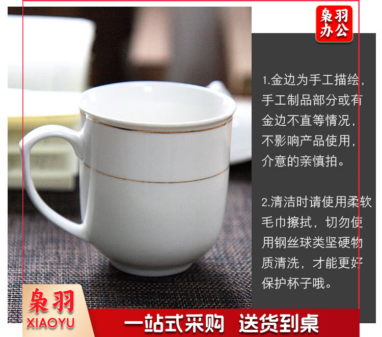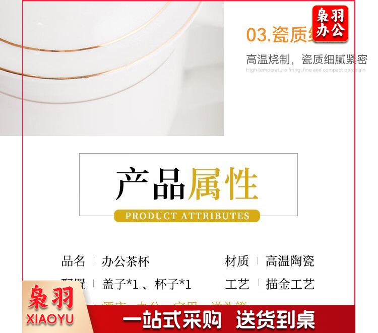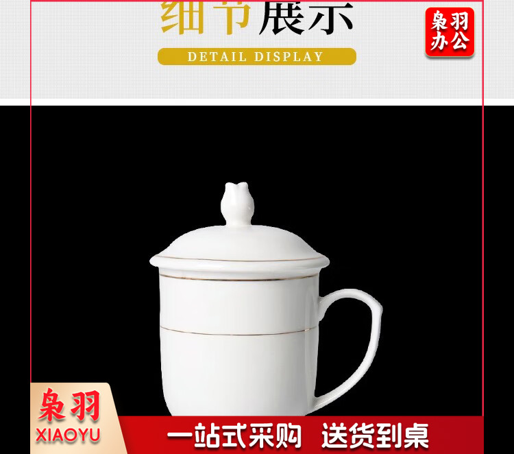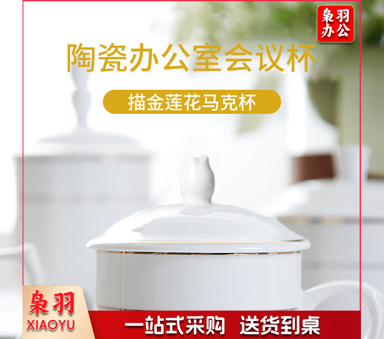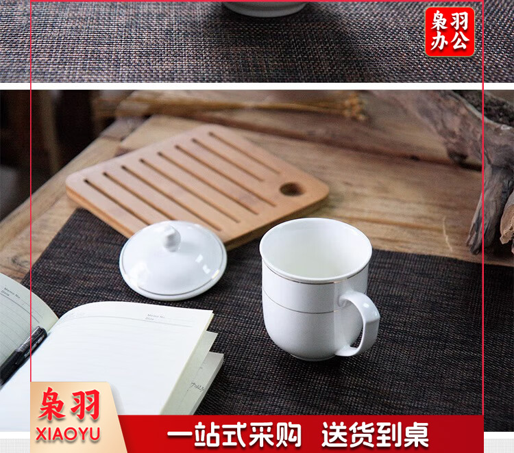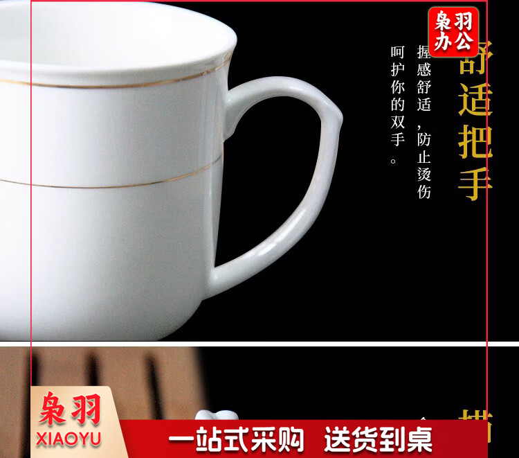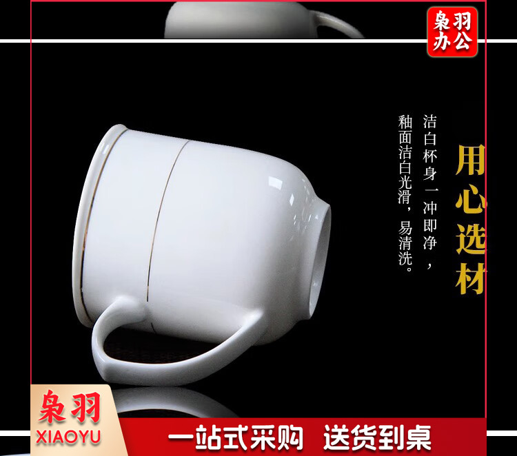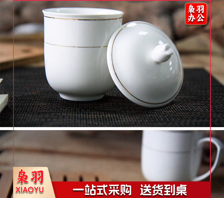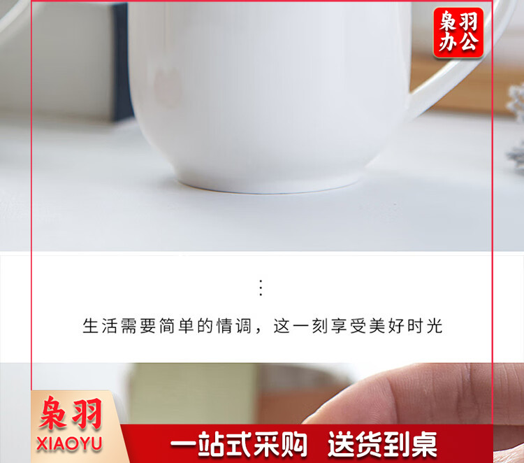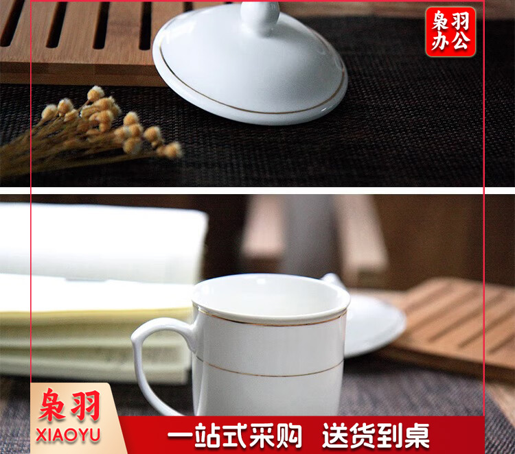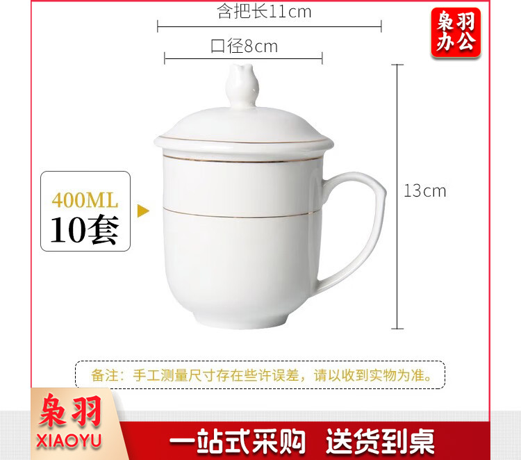 茶杯陶瓷杯办公杯带盖 商务会议水杯 TH7274 白色 400ml 10只装