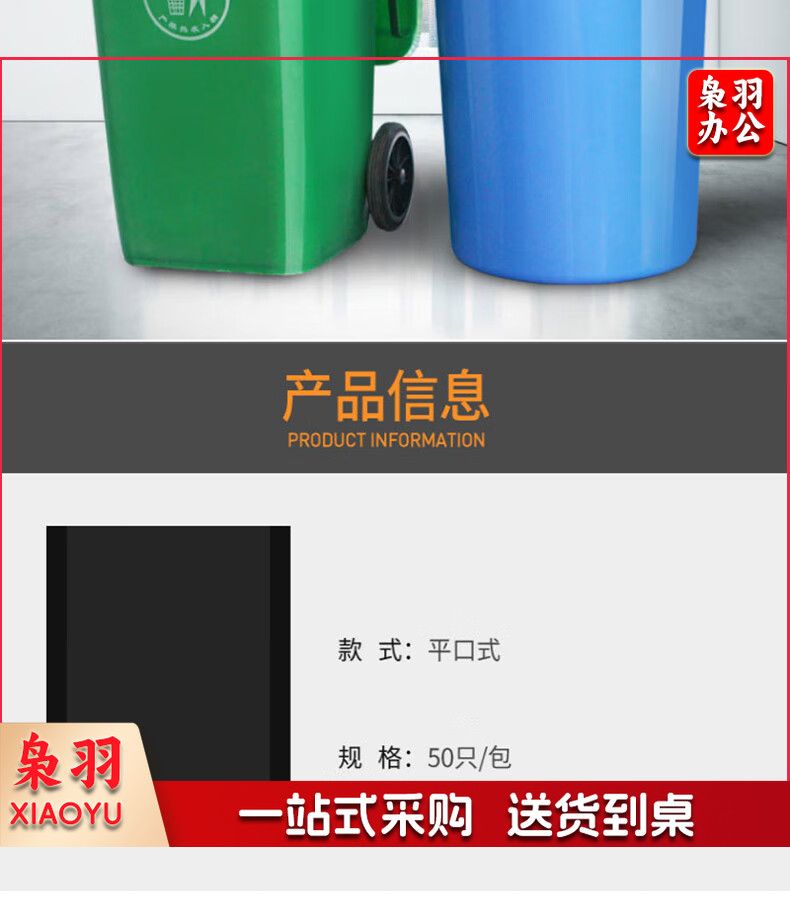 黑色平口垃圾袋 90*110cm/个 50个/捆