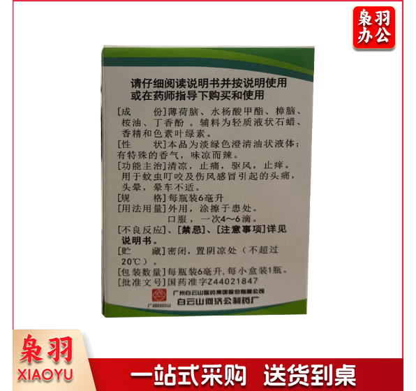 白云山 风油精 6ml 清凉止痛驱风止痒蚊虫叮咬头痛头晕晕车不适