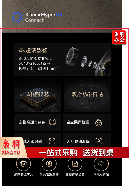 小米智能摄像机C700 800万像素4K超清监控摄像头360度全景AI人形侦测
