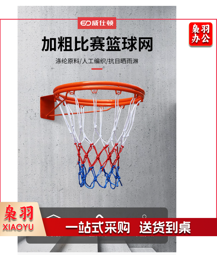 威仕顿 篮球网 室内外加粗比赛球网标准篮球框网兜 6MM12孔 1副两个装