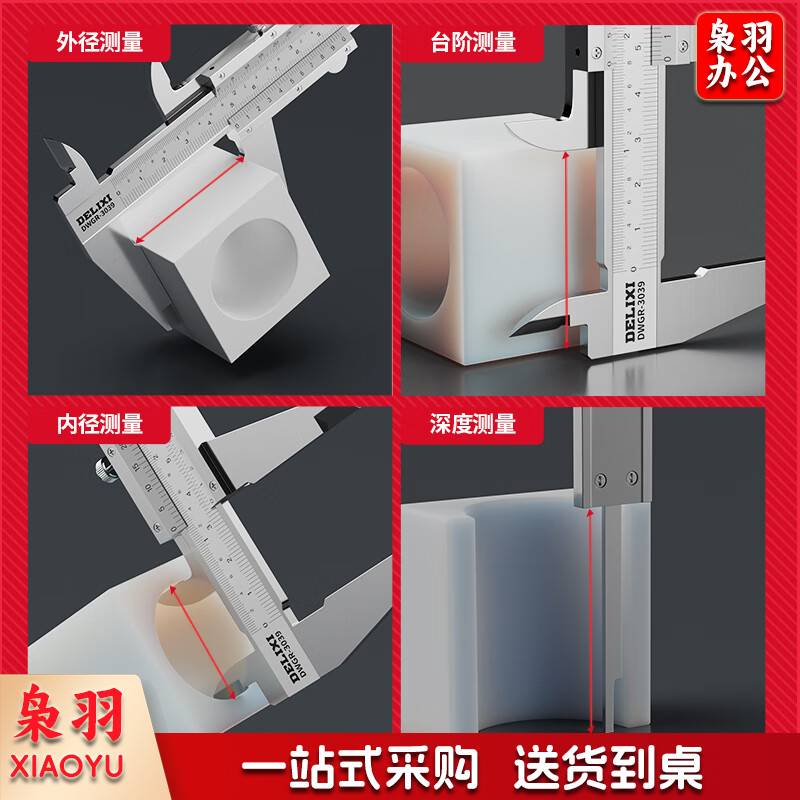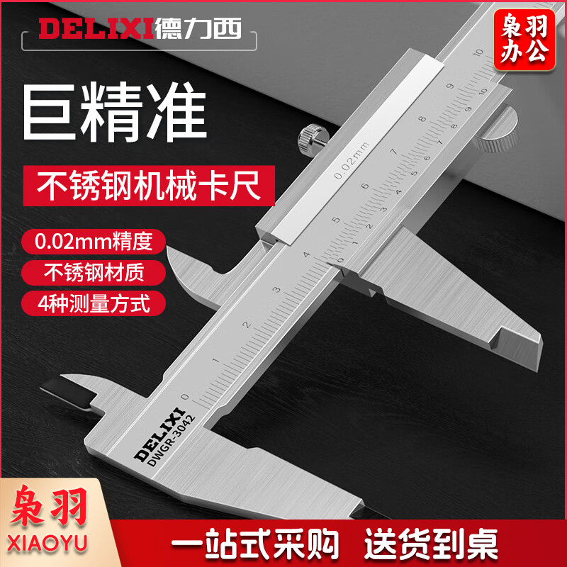 德力西不锈钢游标卡尺油标小型家用工业级油表千分尺高精度卡尺工业级公英制双刻度0-150mm手动工具