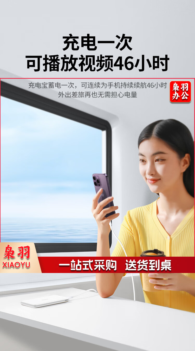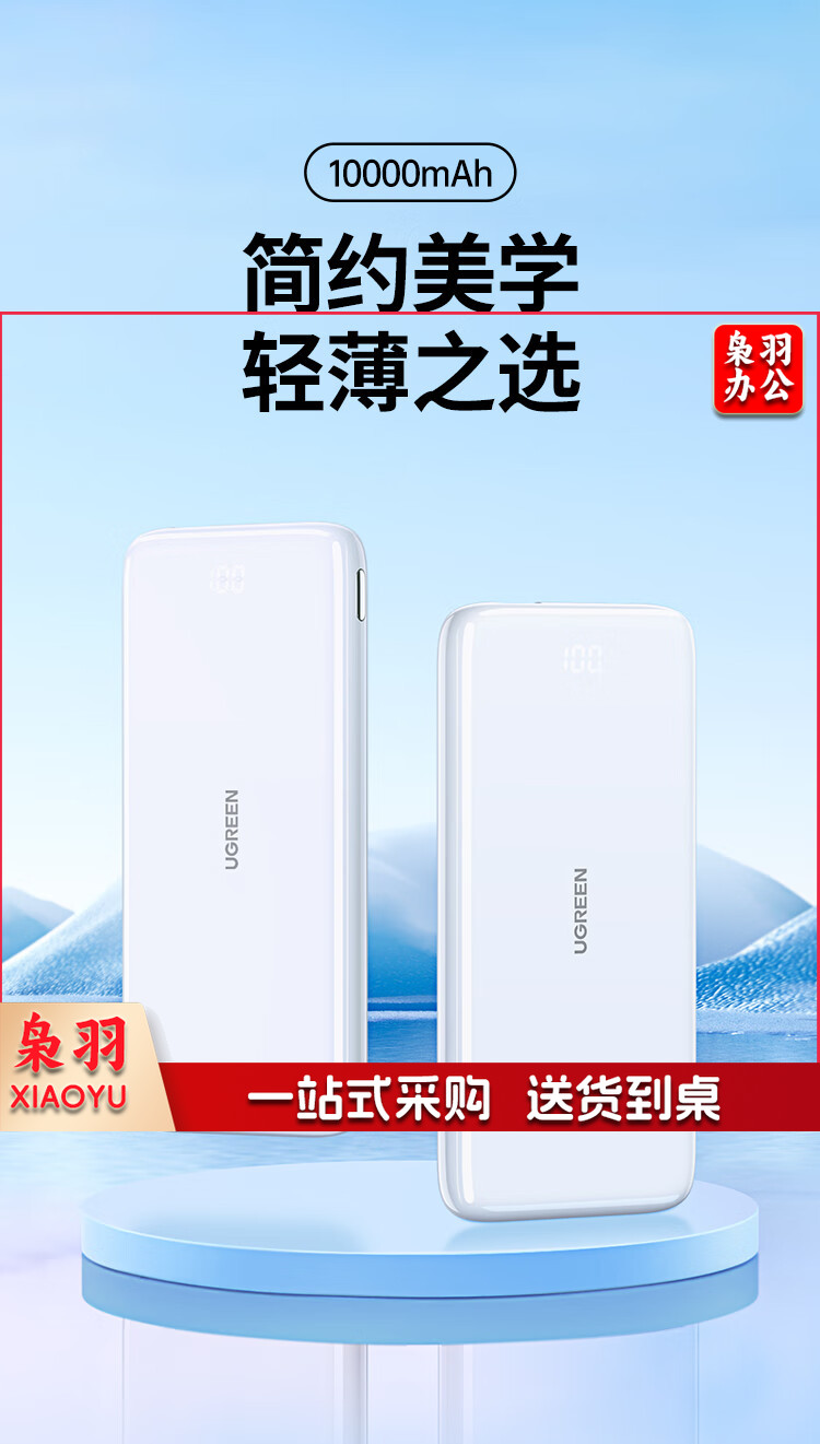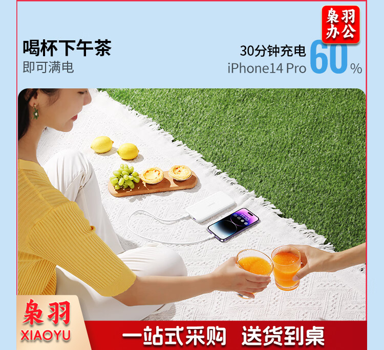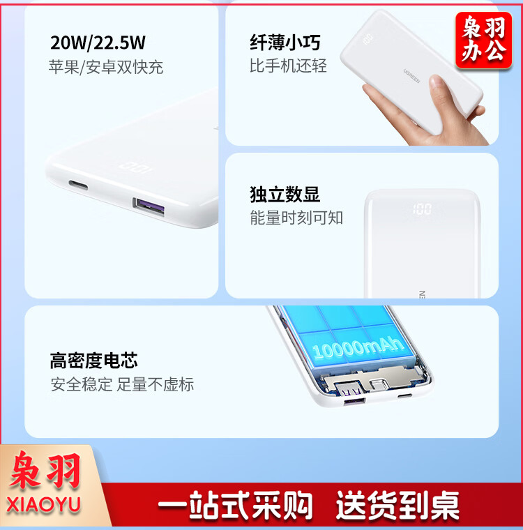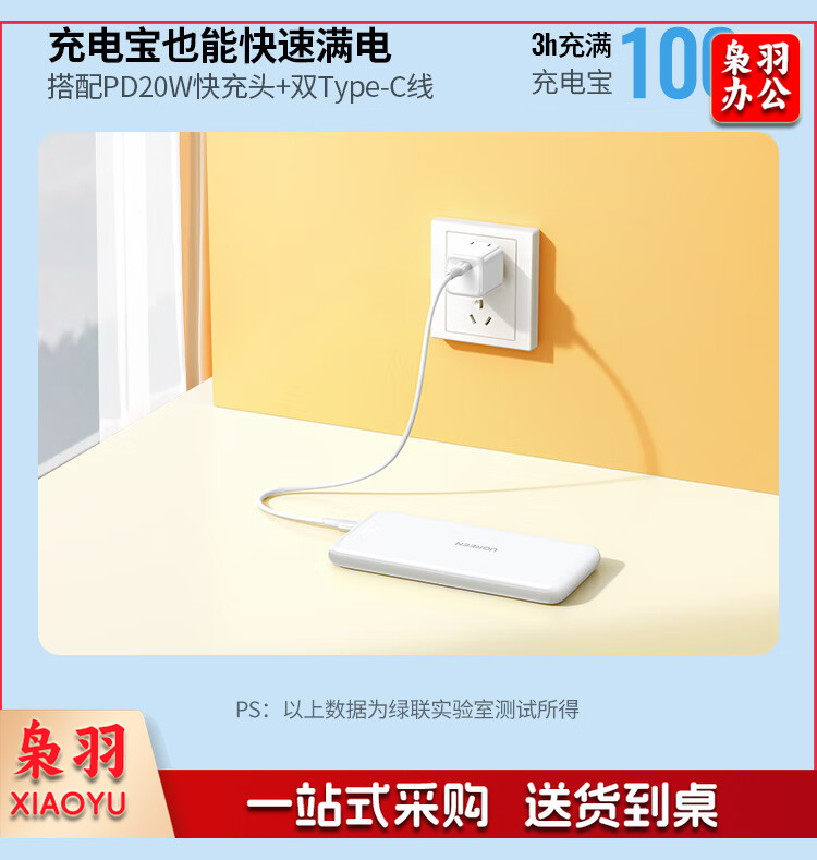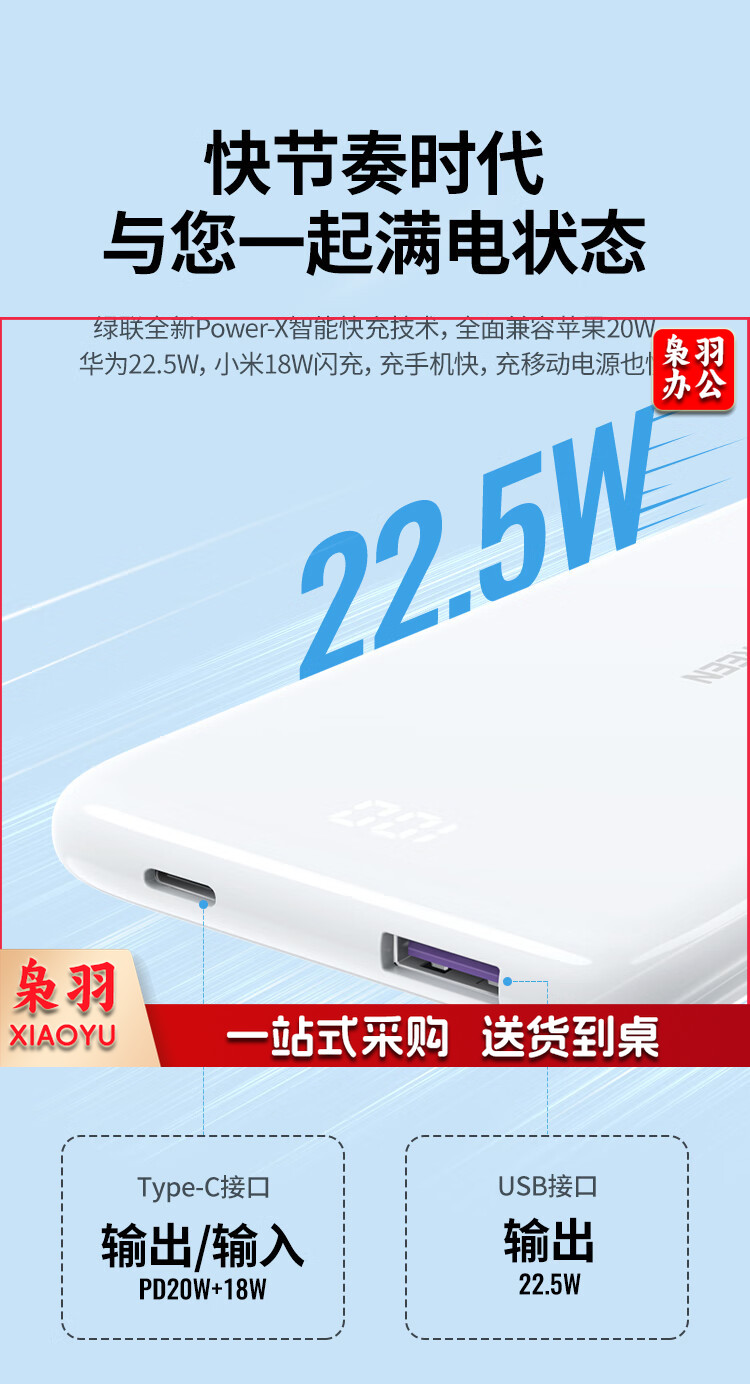 绿联 充电宝快充20000毫安时 支持苹果PD20W华为22.5W 大容量随身移动电源 通用iPhone14/小米安卓手机 PB201
