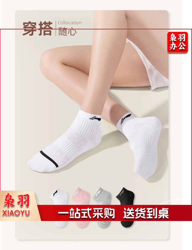 李宁运动袜子女防嗅白色棉袜羽毛球足球跑步薄款吸汗透气短袜夏季 3双