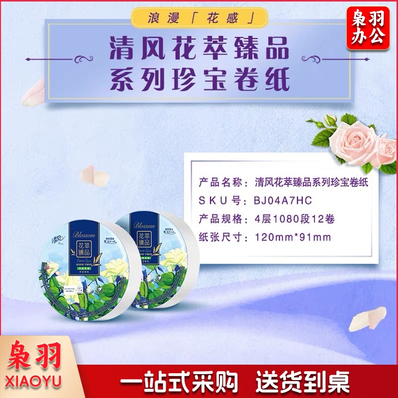 清风花臻品系列珍宝卷纸大盘纸酒店商场卫生间厕所用纸